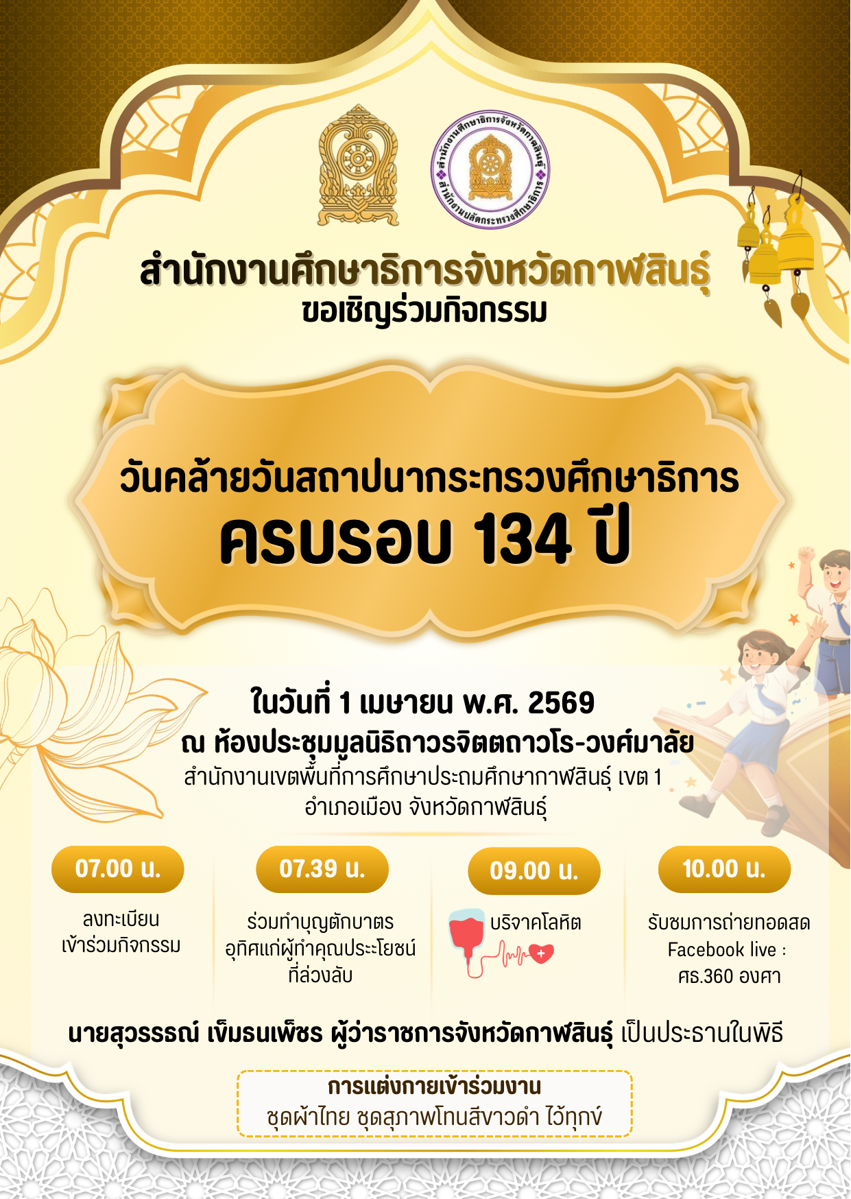 สำนักงานศึกษาธิการจังหวัดกาฬสินธุ์ เดินทางส่งมอบความช่วยเหลือบริจาคสิ่งของ เครื่องอุปโภคบริโภค เพื่อช่วยเหลือผู้ประสบภัยชายแดนไทย – กัมพูชา25 ธันวาคม 2568