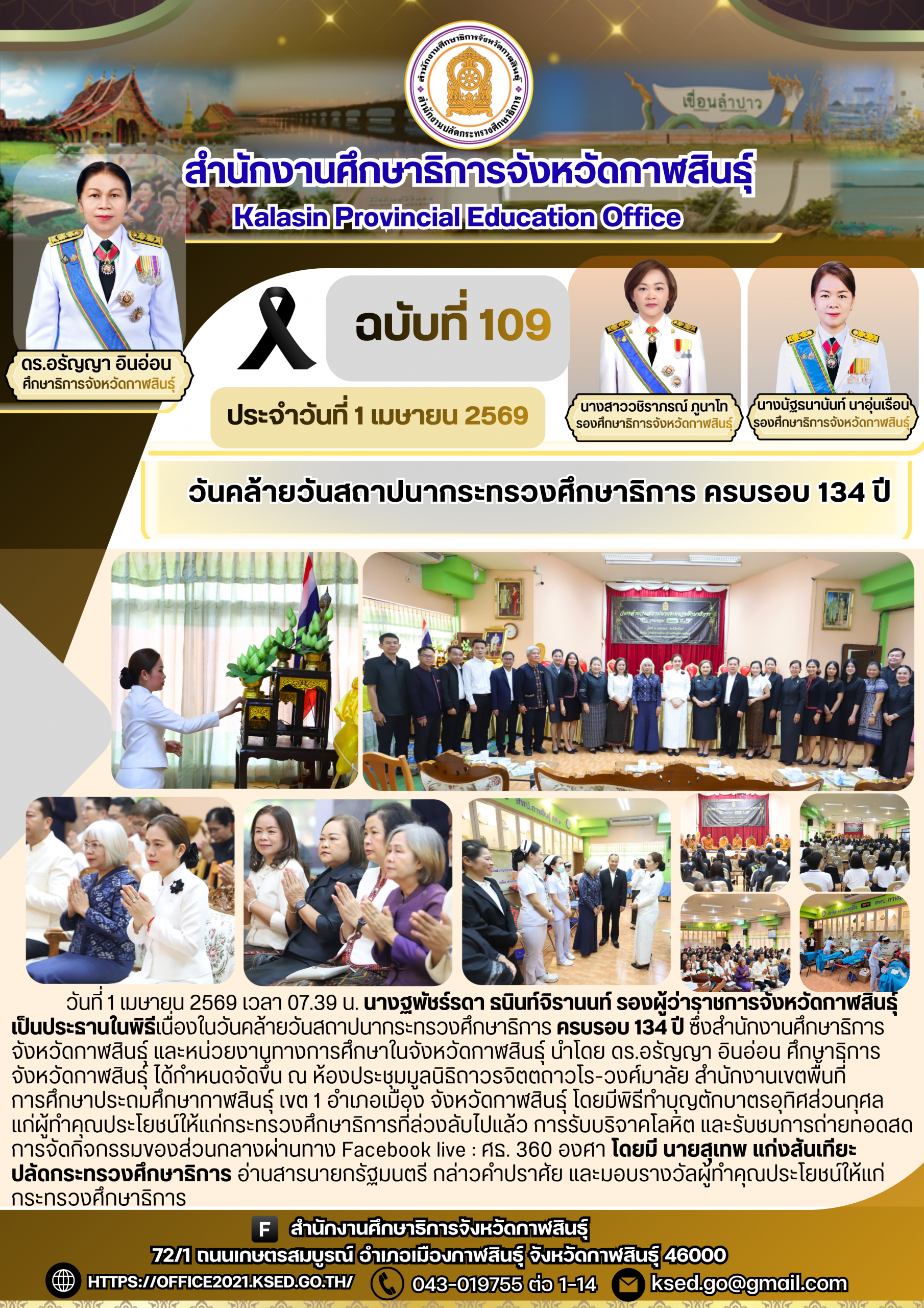 วันคล้ายวันสถาปนากระทรวงศึกษาธิการ ครบรอบ 134 ปี3 เมษายน 2569