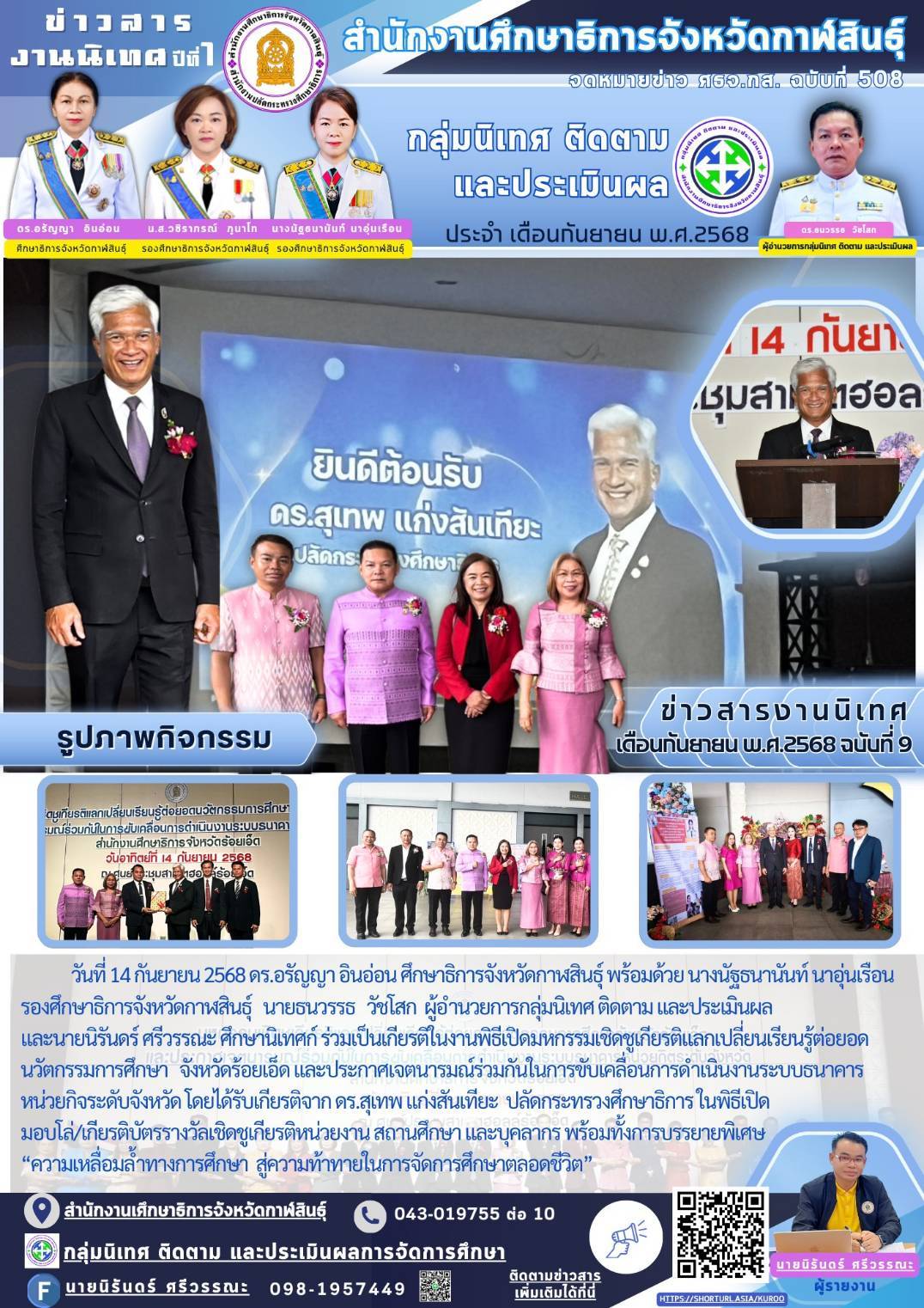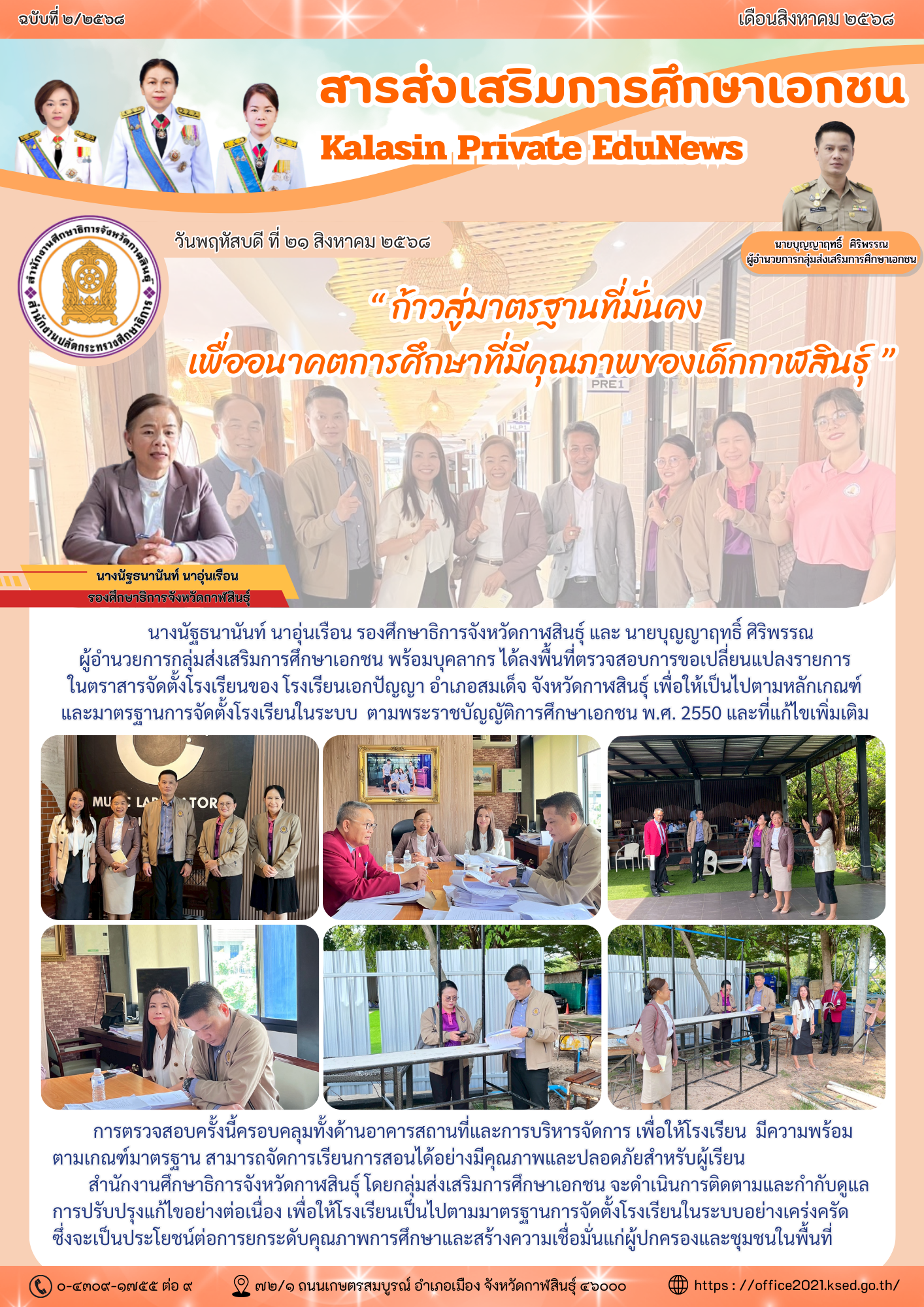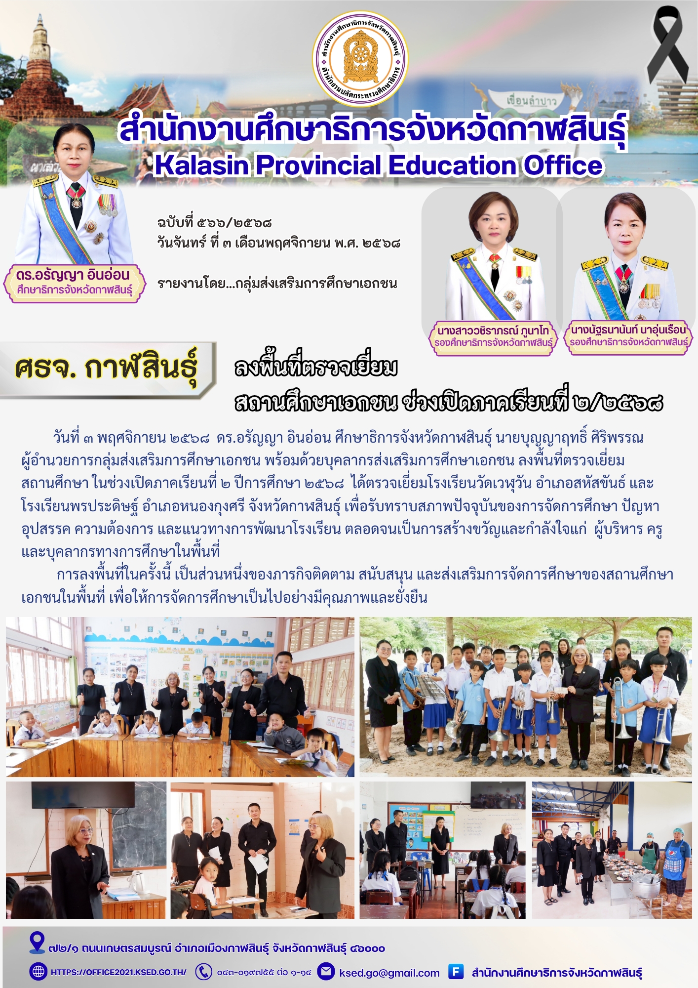การติดตามการจัดการศึกษาของโรงเรียนเอกชน นอกระบบ จังหวัดกาฬสินธุ์โดย : นายสุวิทย์ ปะกาเวสา1 ตุลาคม 2568