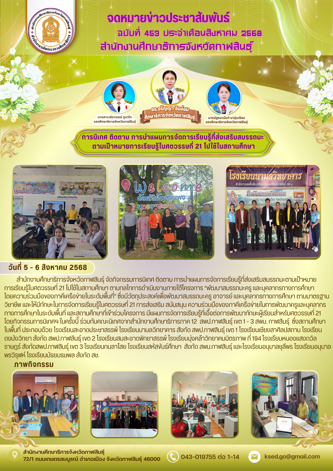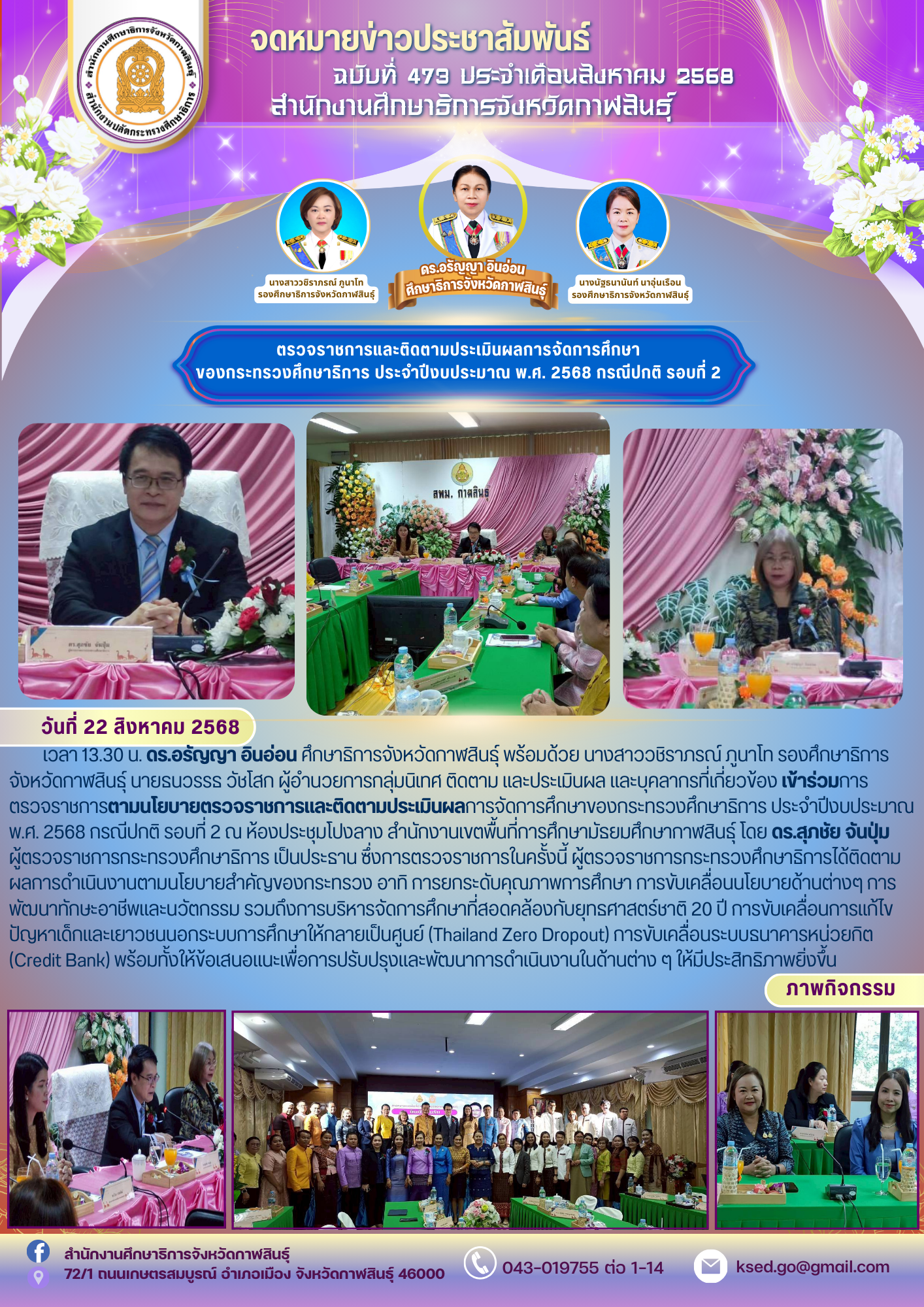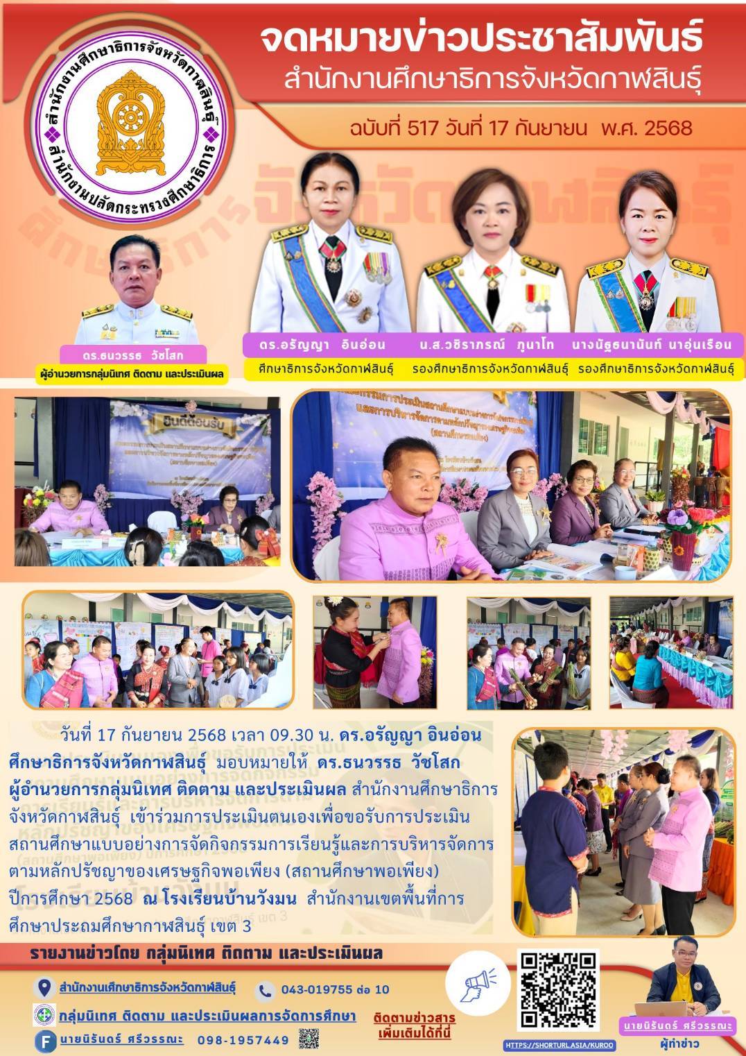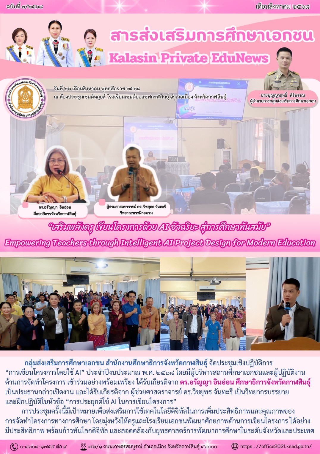 การติดตามการจัดการศึกษาของโรงเรียนเอกชน นอกระบบ จังหวัดกาฬสินธุ์โดย : นายสุวิทย์ ปะกาเวสา1 ตุลาคม 2568