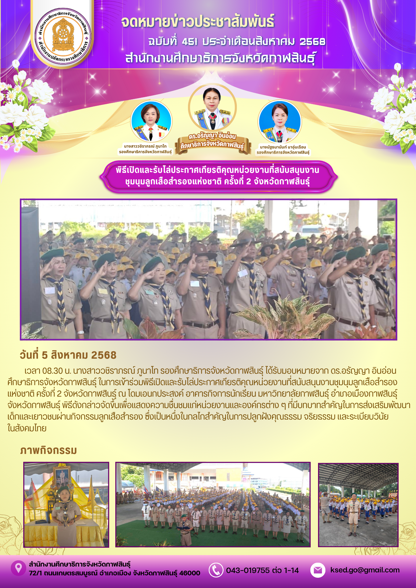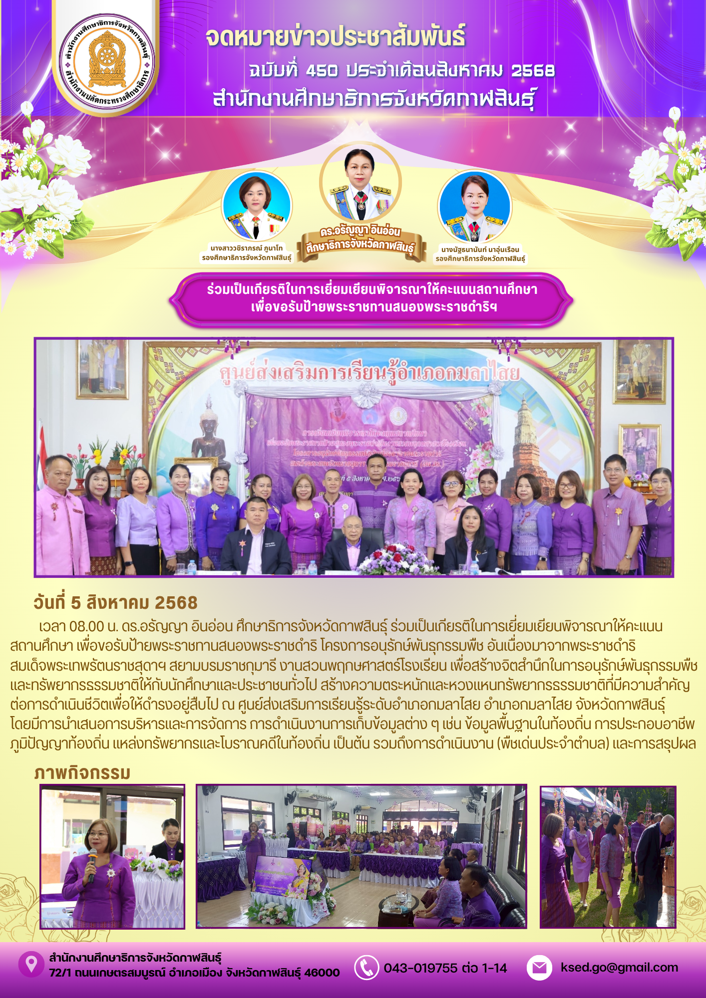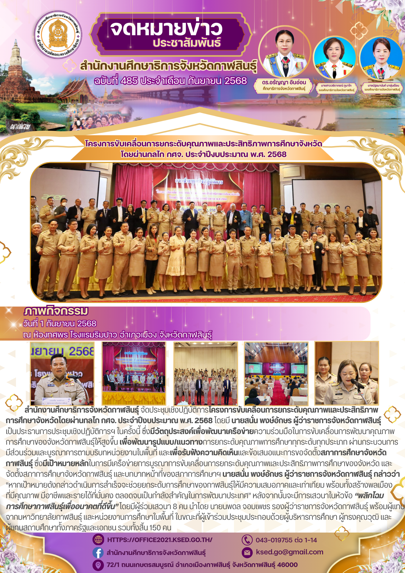 “มหกรรมการศึกษาและนวัตกรรม กาฬสินธุ์เป็นหนึ่ง 2568: พลังคนรุ่นใหม่สู่ความเป็นเลิศ”โดย : นายสุวิทย์ ปะกาเวสา22 สิงหาคม 2568