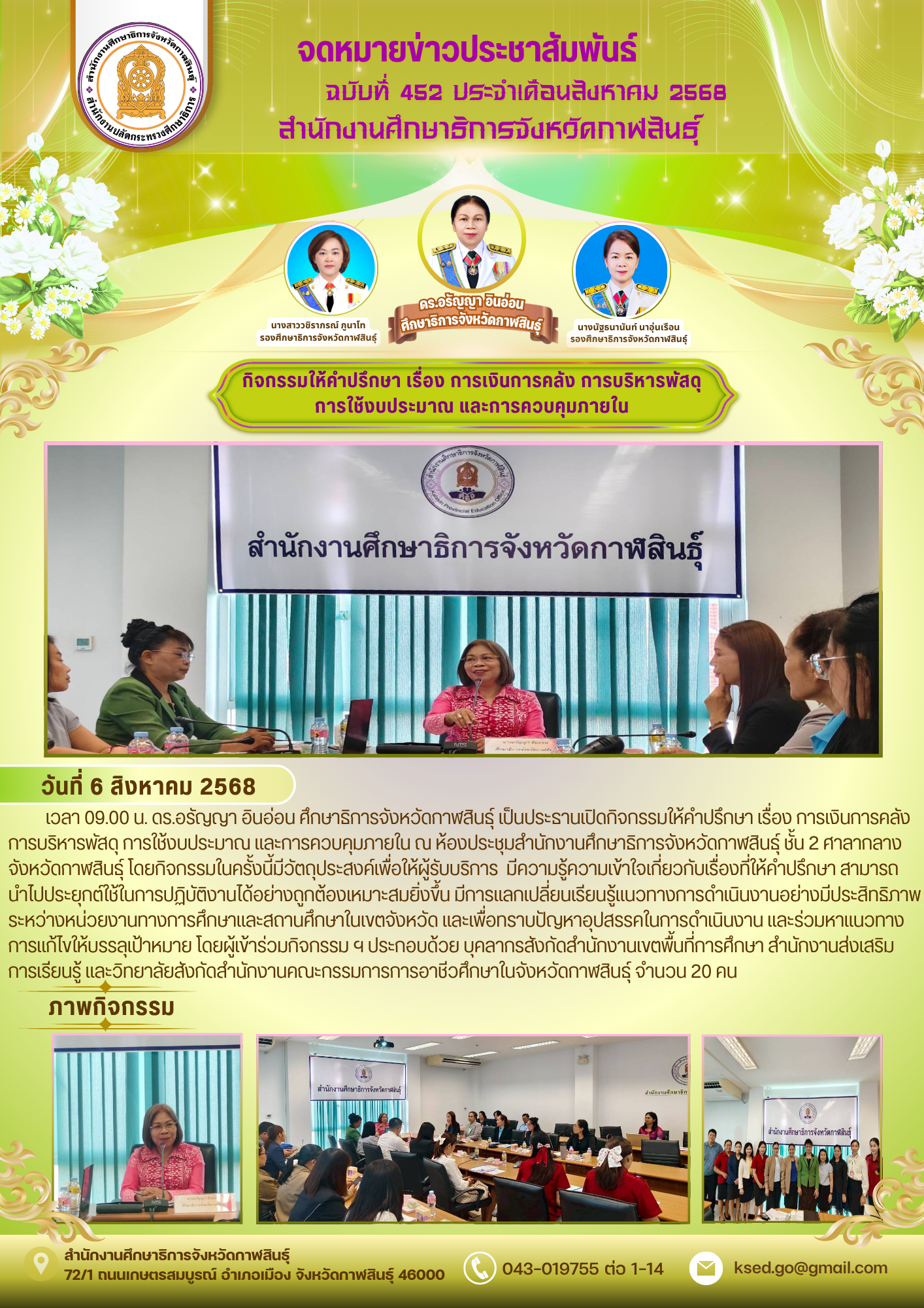ประชุมคณะกรรมการบริหารงบประมาณ ประจำปีงบประมาณ พ.ศ. 2568 สำนักงานศึกษาธิการจังหวัดกาฬสินธุ์โดย : นายสุวิทย์ ปะกาเวสา20 สิงหาคม 2568