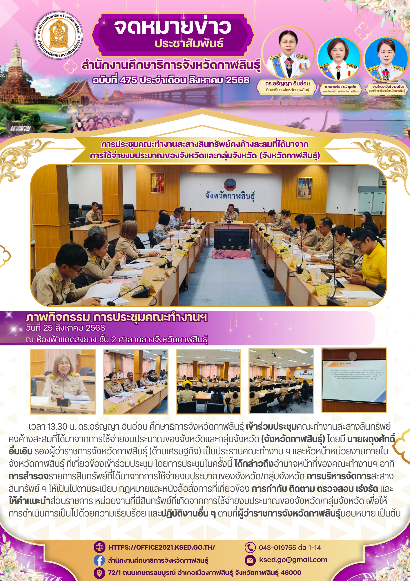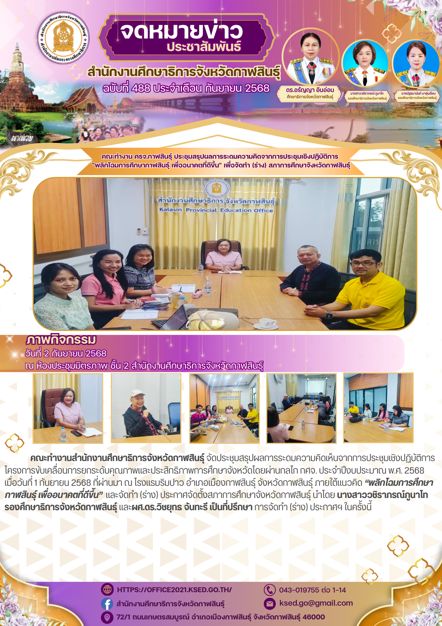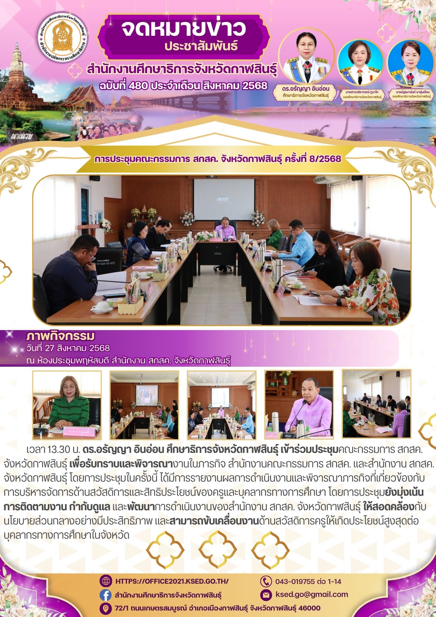 ประชุมคณะกรรมการ สกสค. จังหวัดกาฬสินธุ์โดย : นายสุวิทย์ ปะกาเวสา27 สิงหาคม 2568