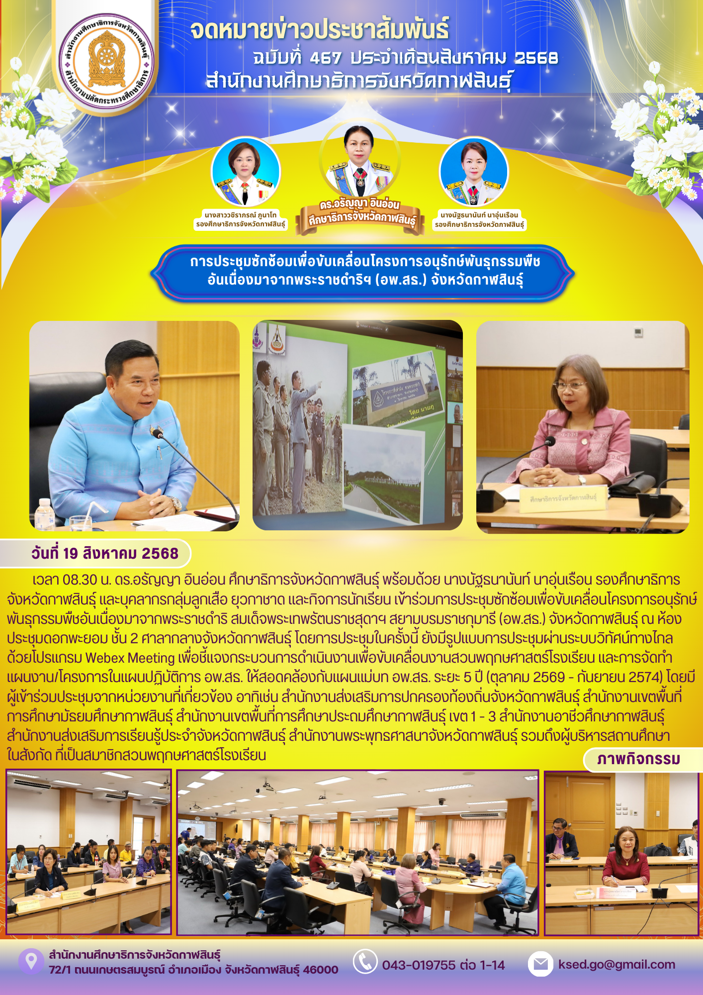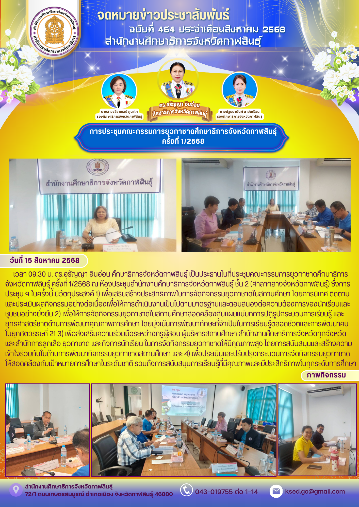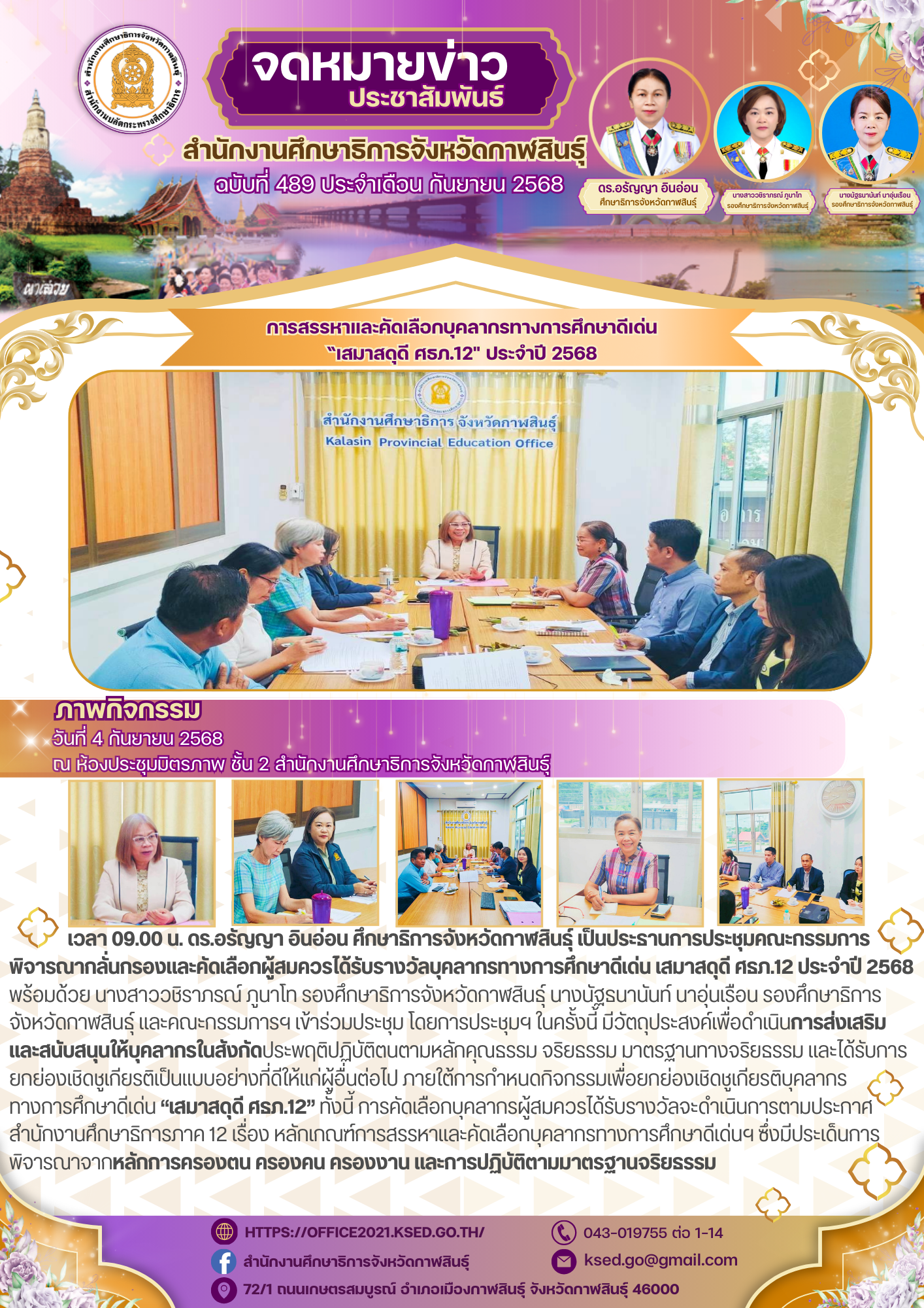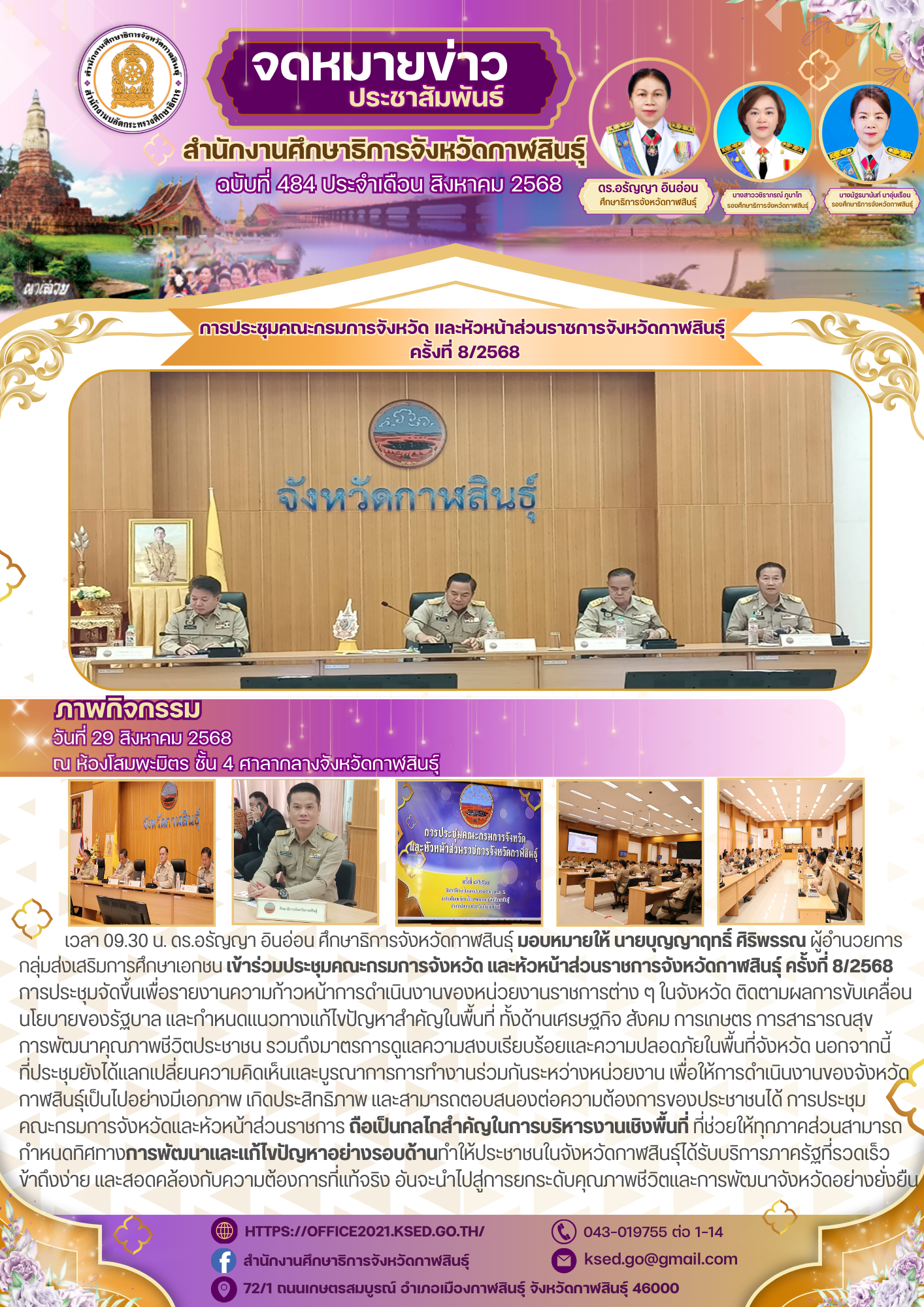 ประชุมคณะกรรมการ สกสค. จังหวัดกาฬสินธุ์โดย : นายสุวิทย์ ปะกาเวสา27 สิงหาคม 2568
