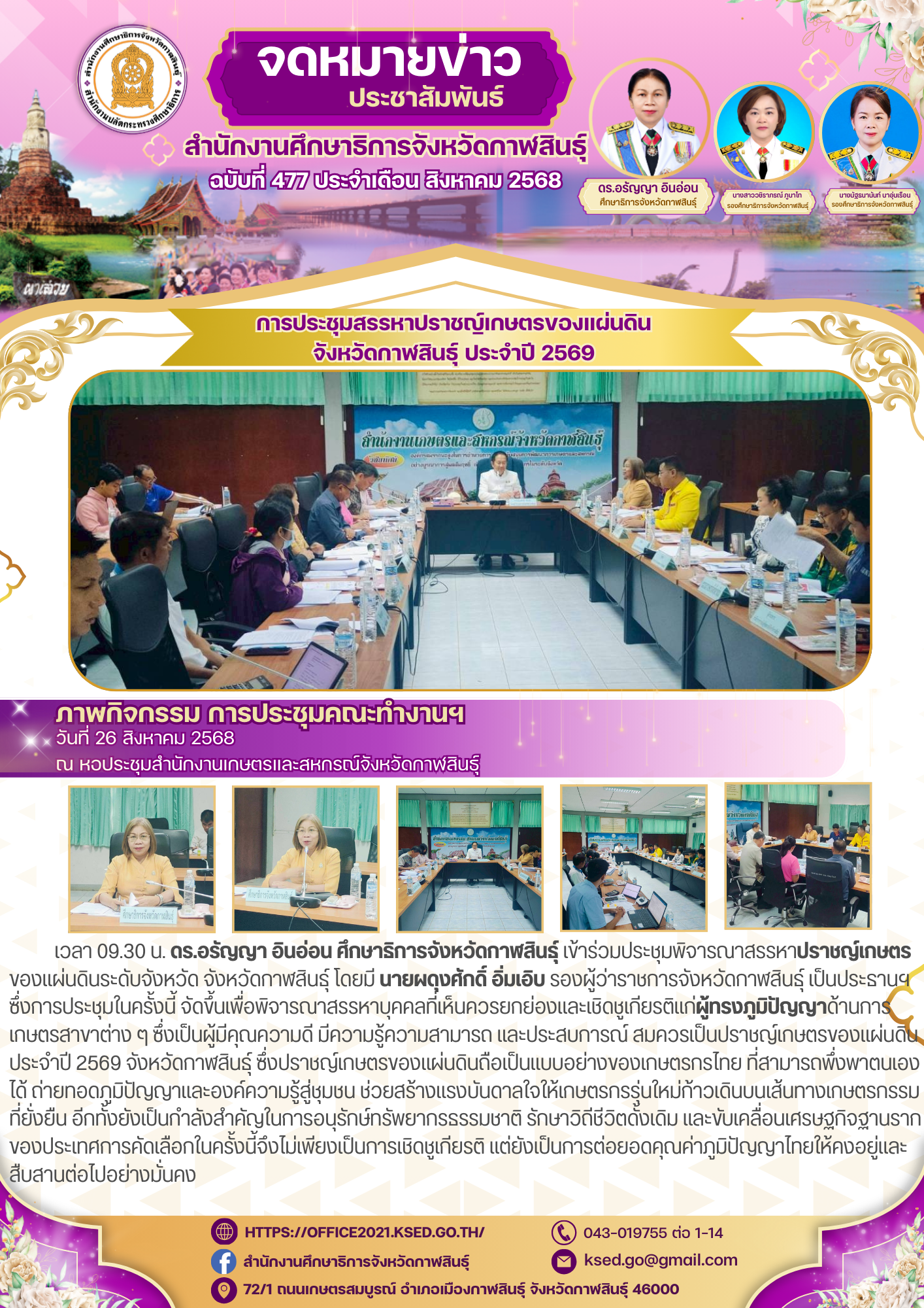 ประชุมพิจารณาสรรหาปราชญ์เกษตรของแผ่นดินระดับจังหวัด จังหวัดกาฬสินธุ์ โดย : นายสุวิทย์ ปะกาเวสา26 สิงหาคม 2568
