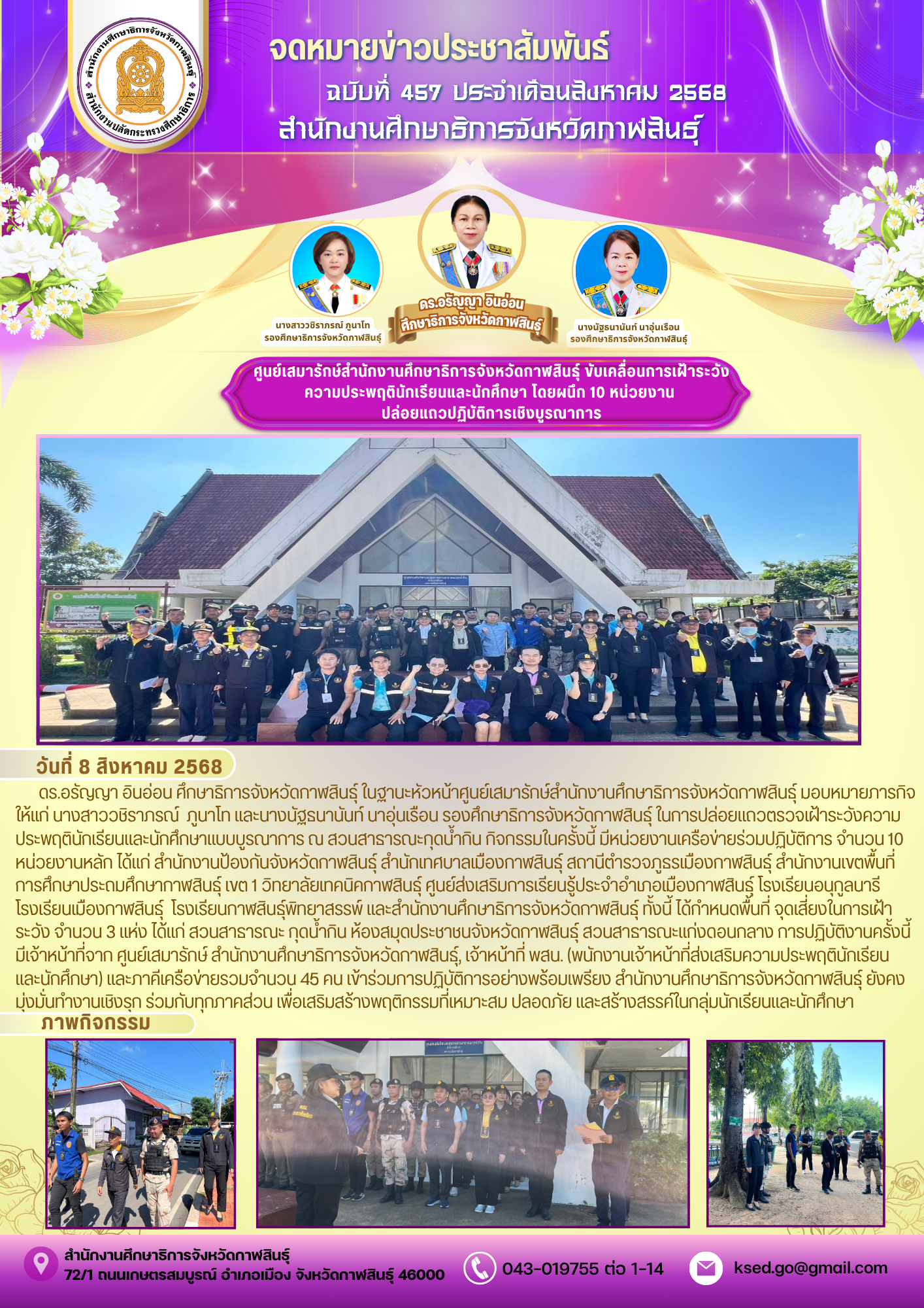 โครงการสร้างและส่งเสริมความเป็นพลเมืองดีตามรอยพระยุคลบาทด้านการศึกษาสู่การปฏิบัติ ในพื้นที่รับผิดชอบของสำนักงานศึกษาธิการภาค 12โดย : นายสุวิทย์ ปะกาเวสา19 สิงหาคม 2568