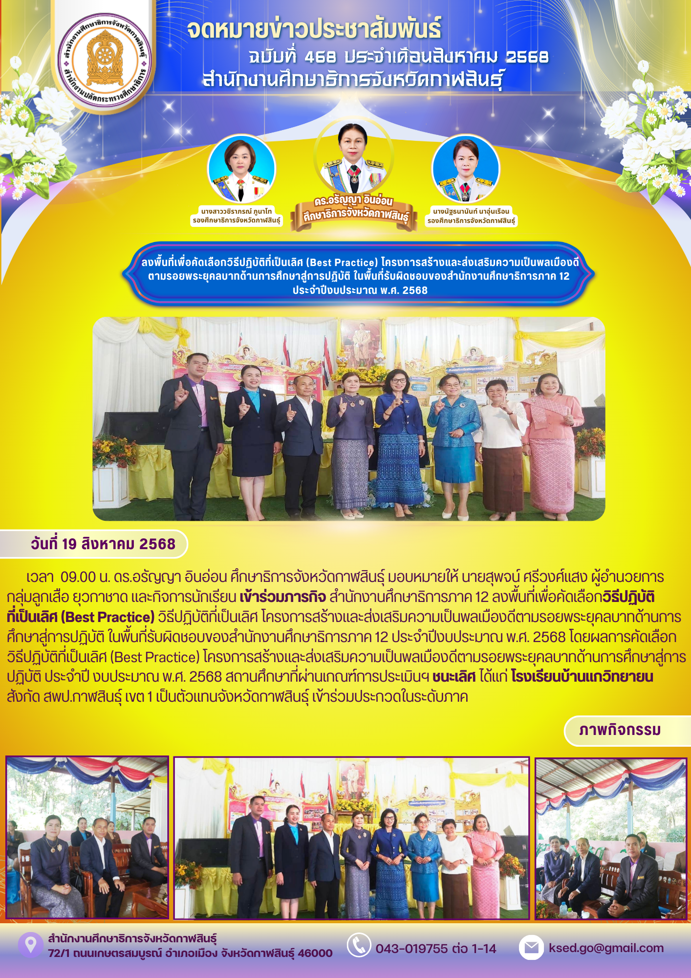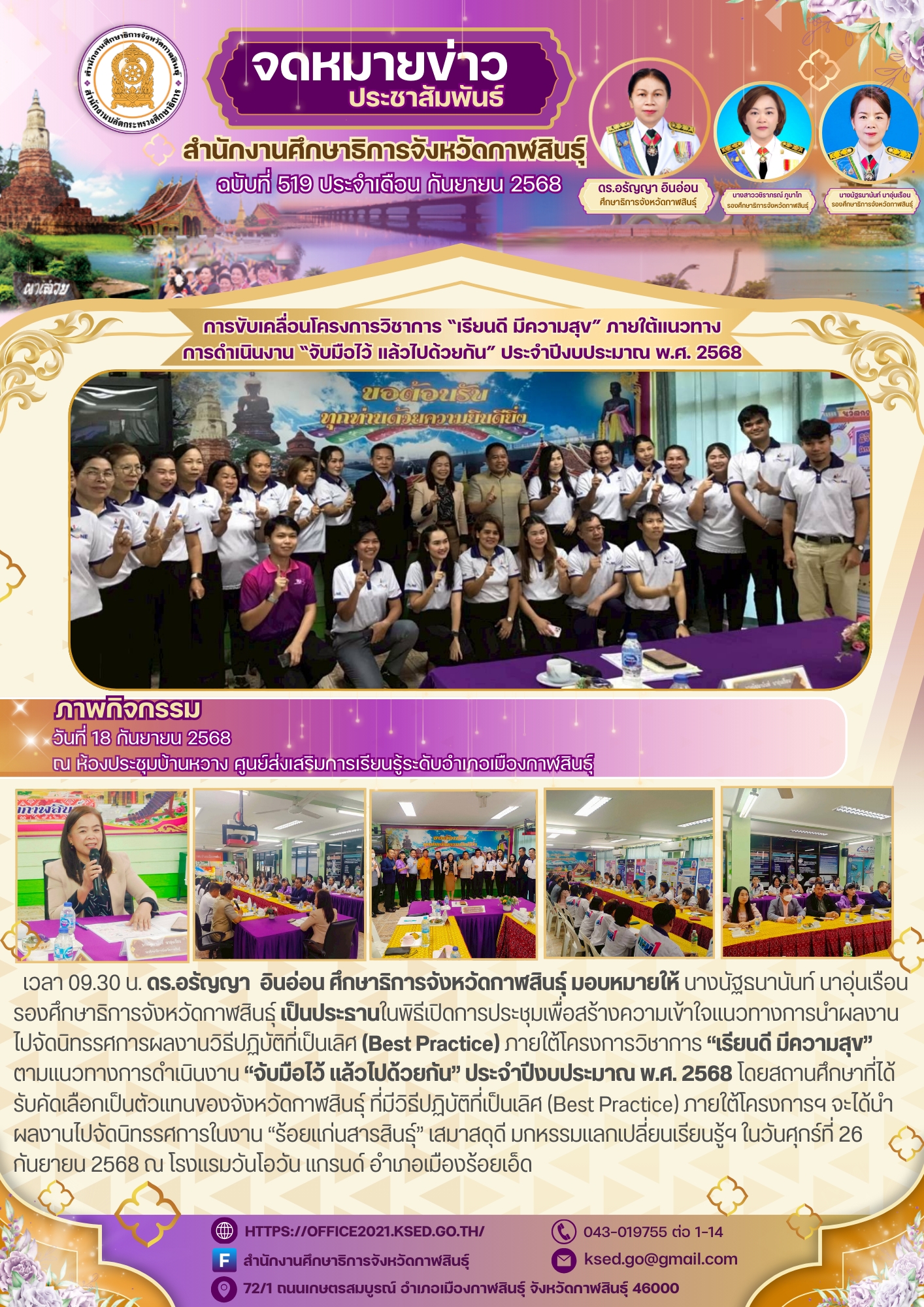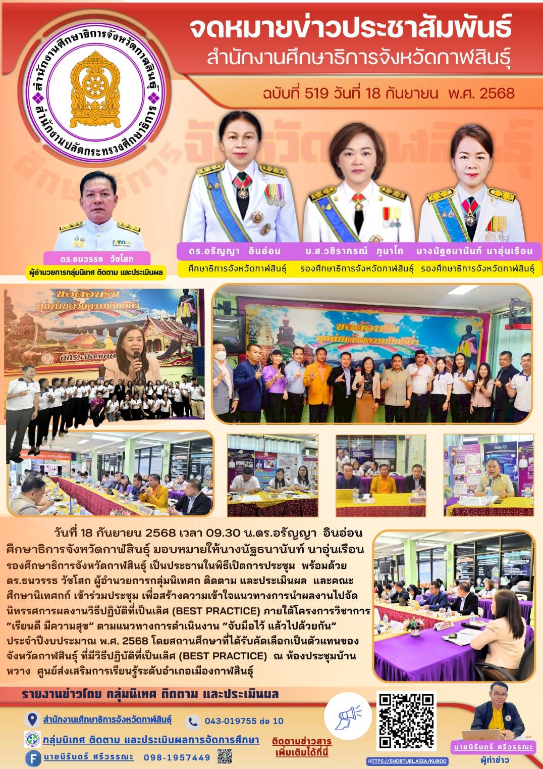 “วิธีปฏิบัติที่เป็นเลิศ (Best Practice)” ภายใต้โครงการวิชาการ “เรียนดี มีความสุข”โดย : นายสุวิทย์ ปะกาเวสา19 กันยายน 2568