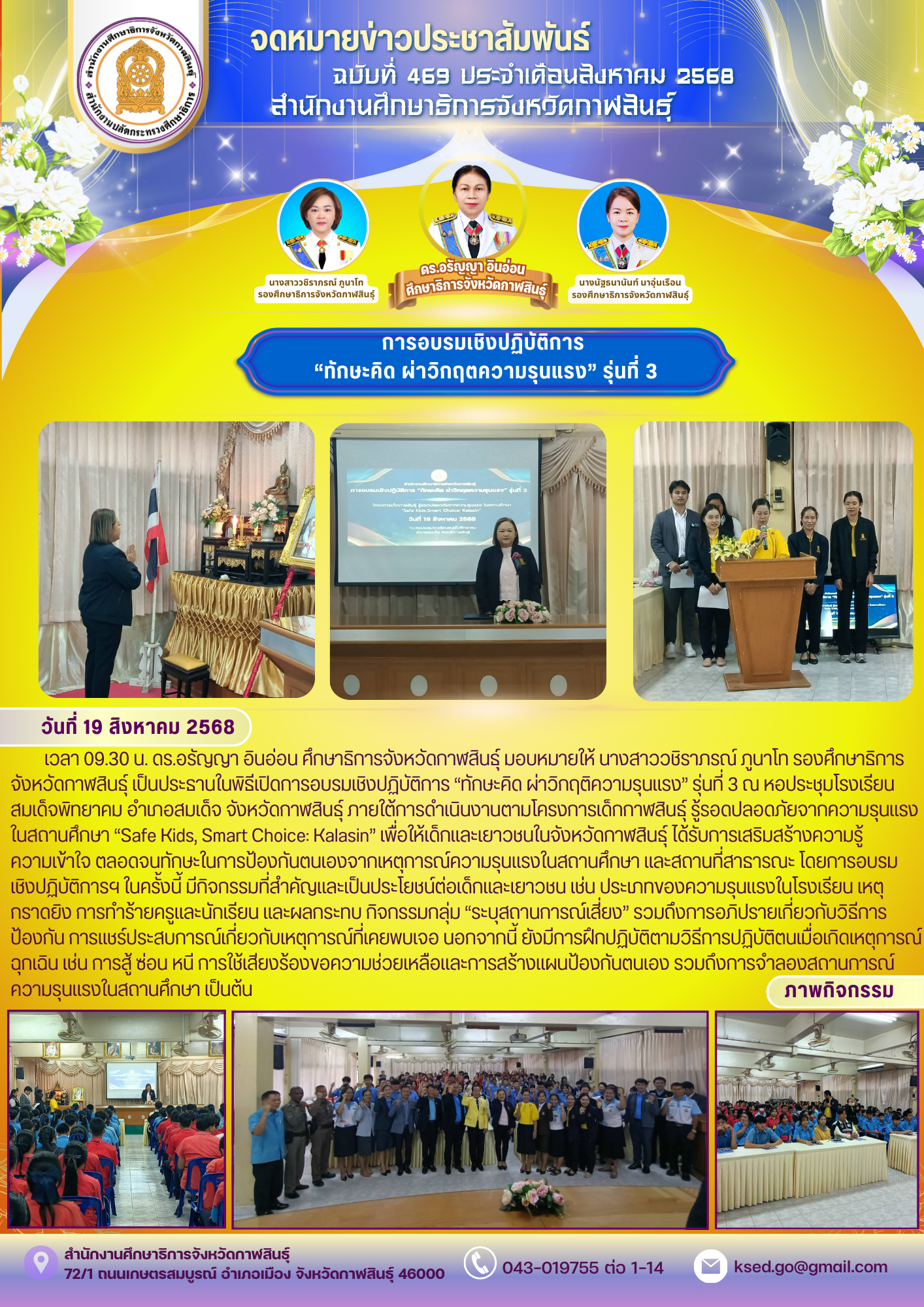 “Safe Kids, Smart Choice: Kalasin”โดย : นายสุวิทย์ ปะกาเวสา19 กันยายน 2568