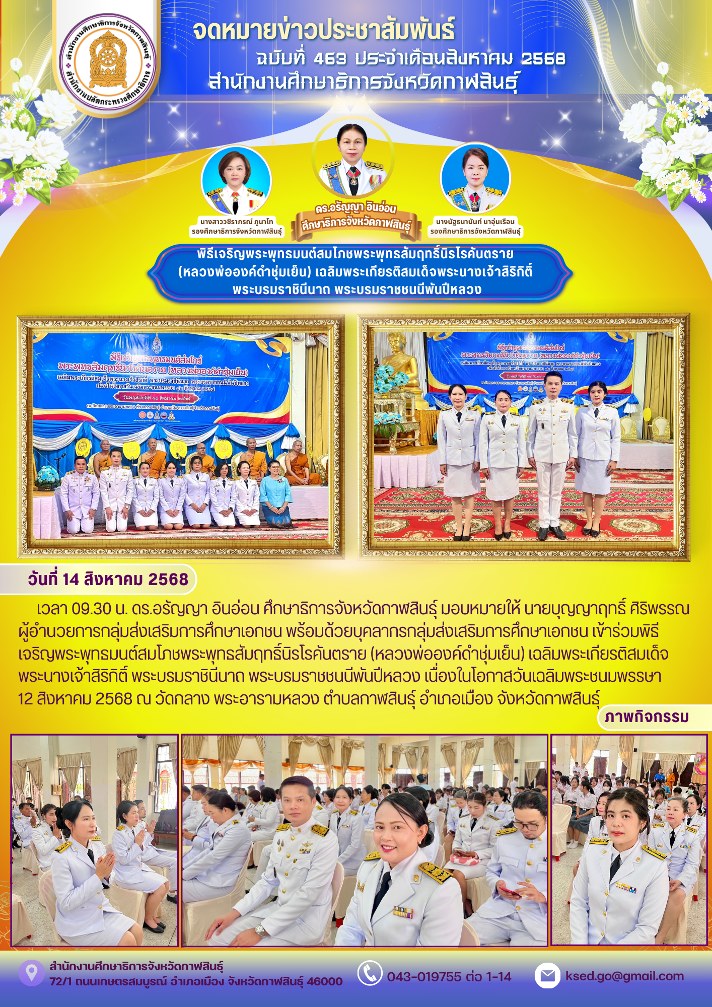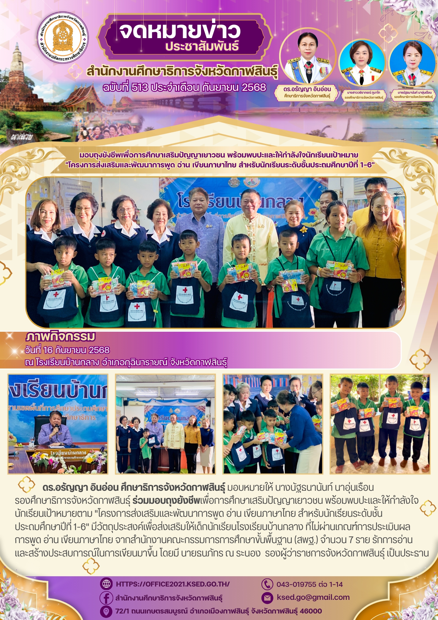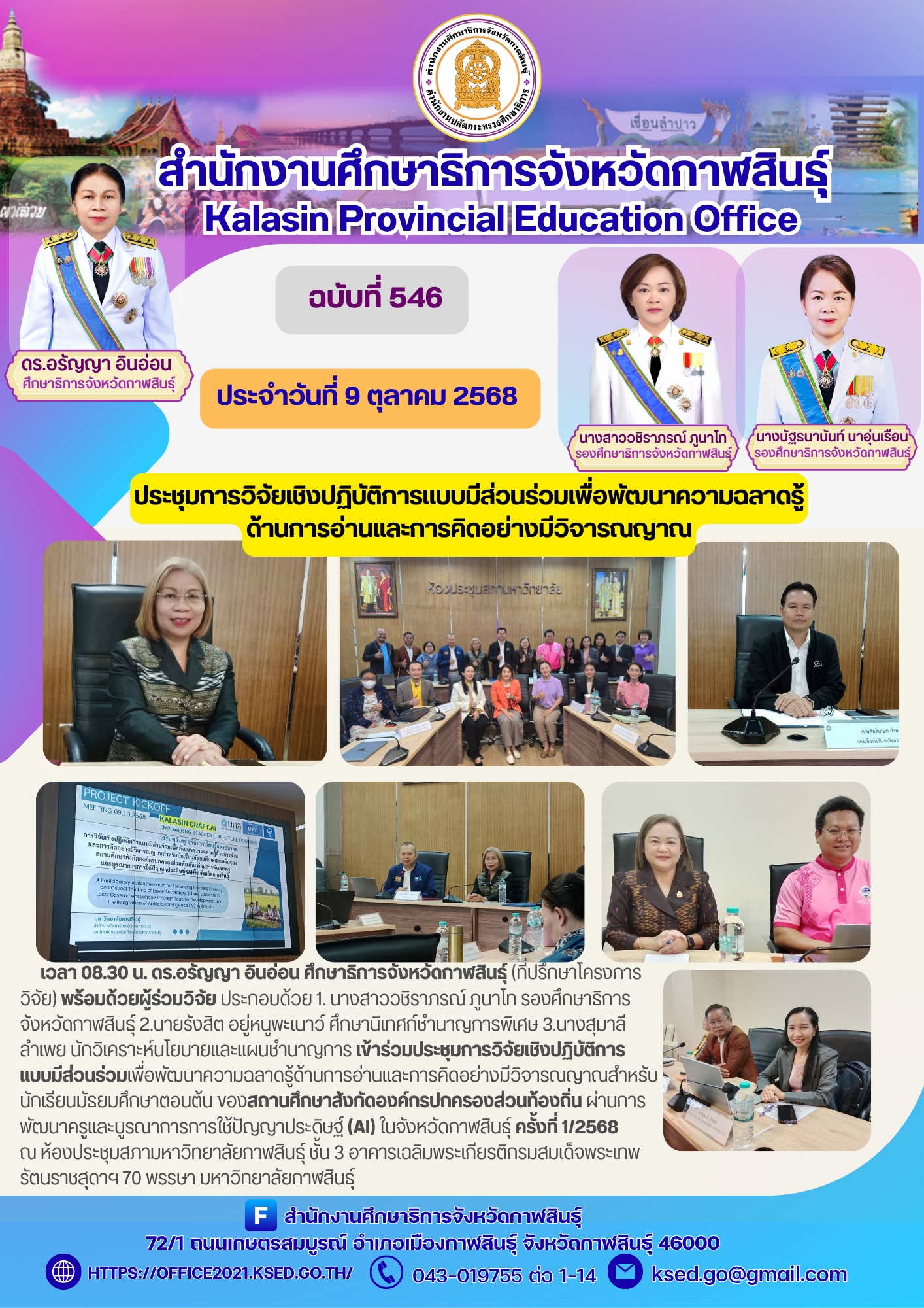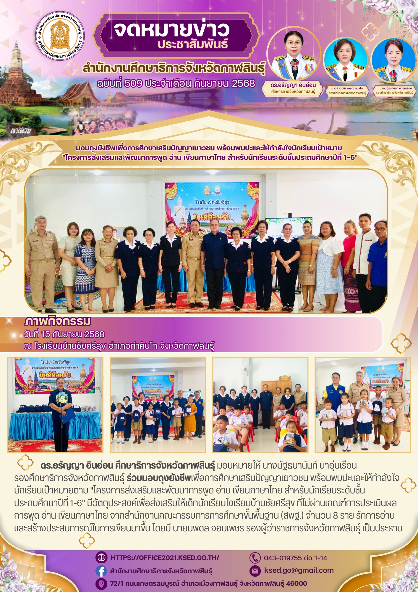 “ฮ่วมเฮียน ฮ่วมฮู้ กาฬสินธุ์ฮักการอ่าน” รู้เท่าทัน สร้างสรรค์ปัญญาโดย : นายสุวิทย์ ปะกาเวสา9 กันยายน 2568