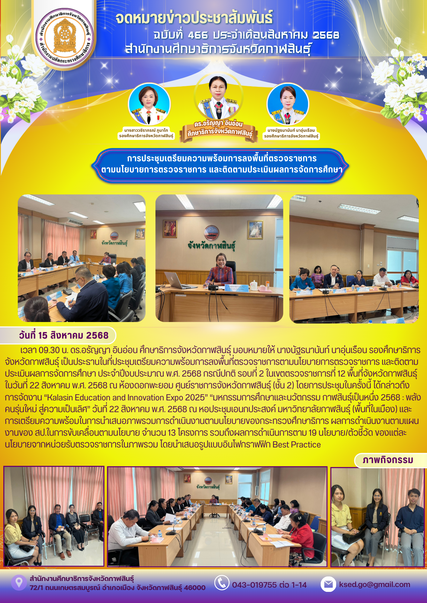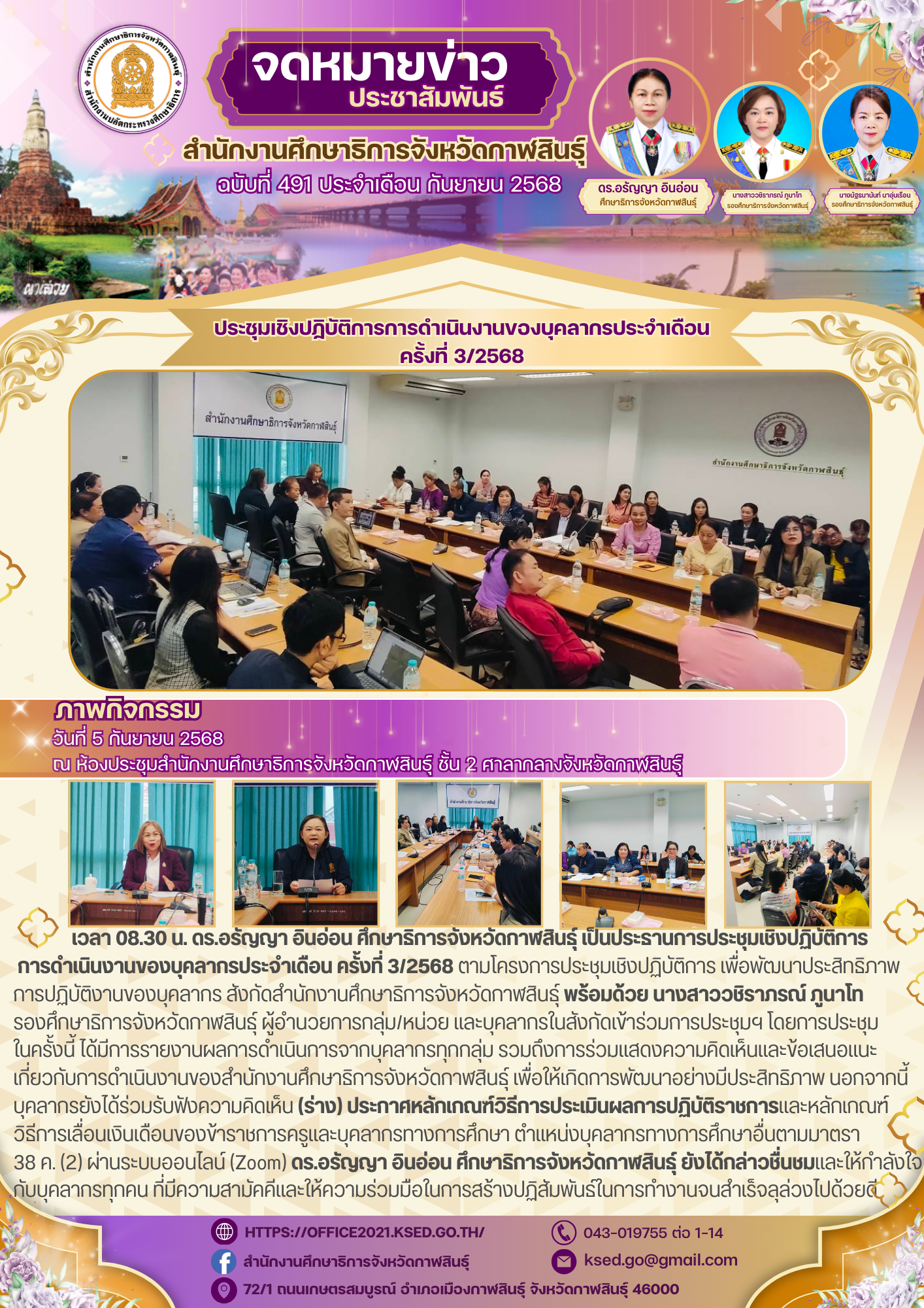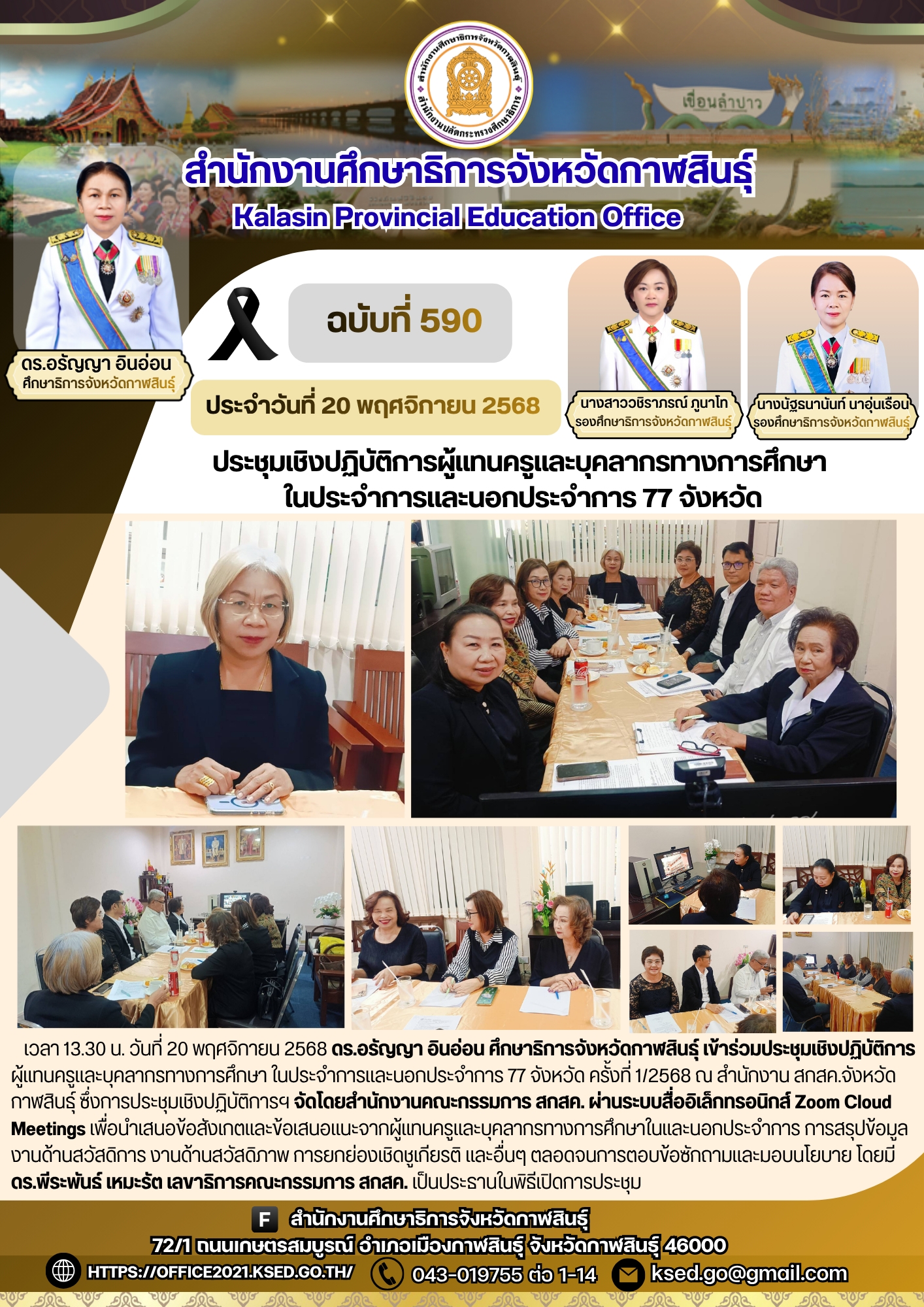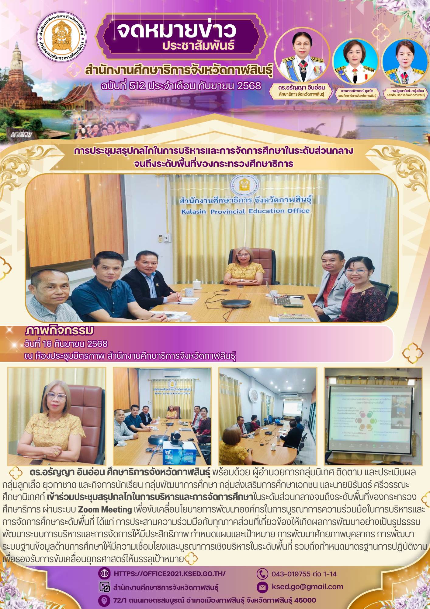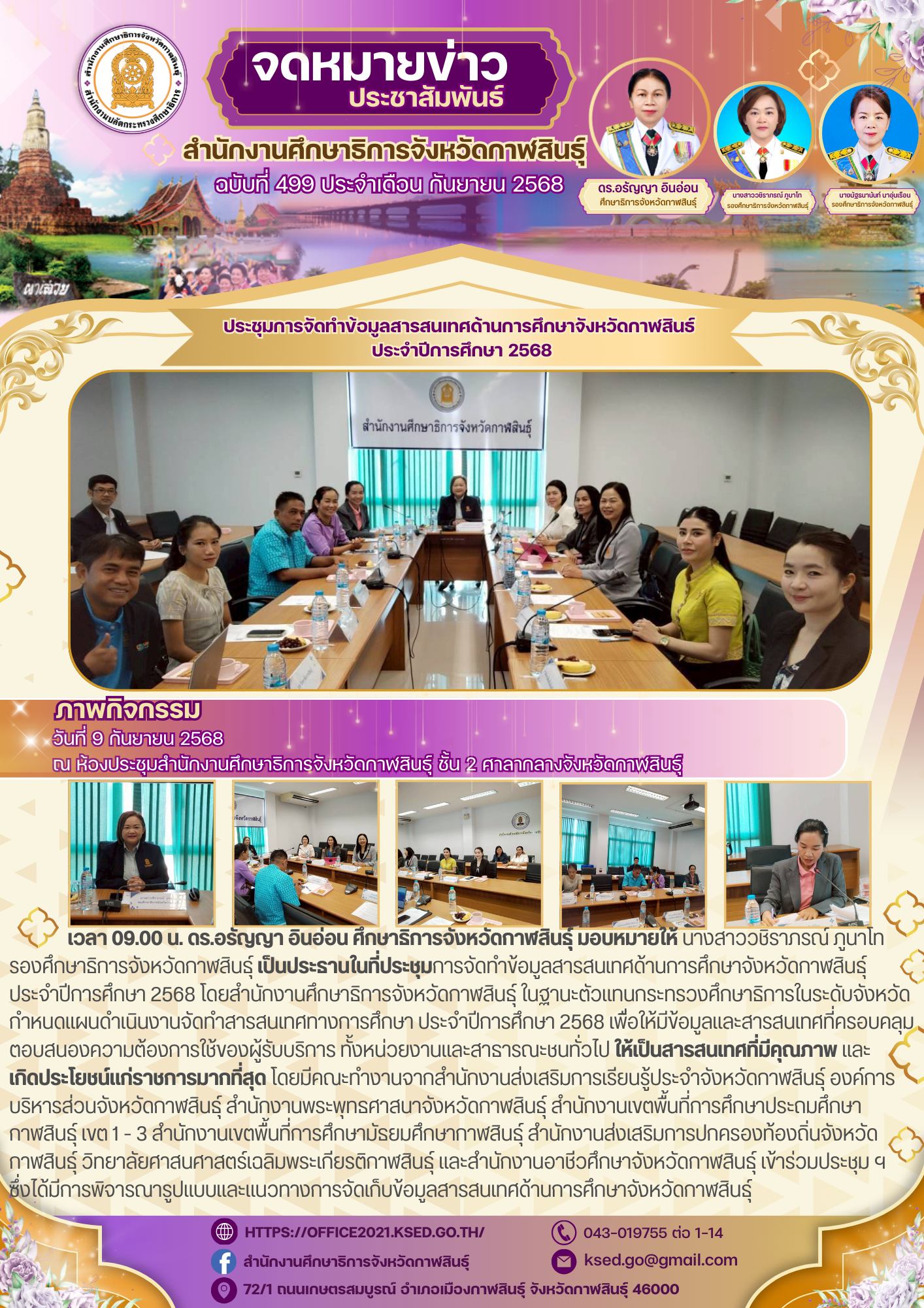 ประชุมการจัดทําข้อมูลสารสนเทศด้านการศึกษาจังหวัดกาฬสินธ์ุประจําปีการศึกษา 2568โดย : นายสุวิทย์ ปะกาเวสา9 กันยายน 2568
