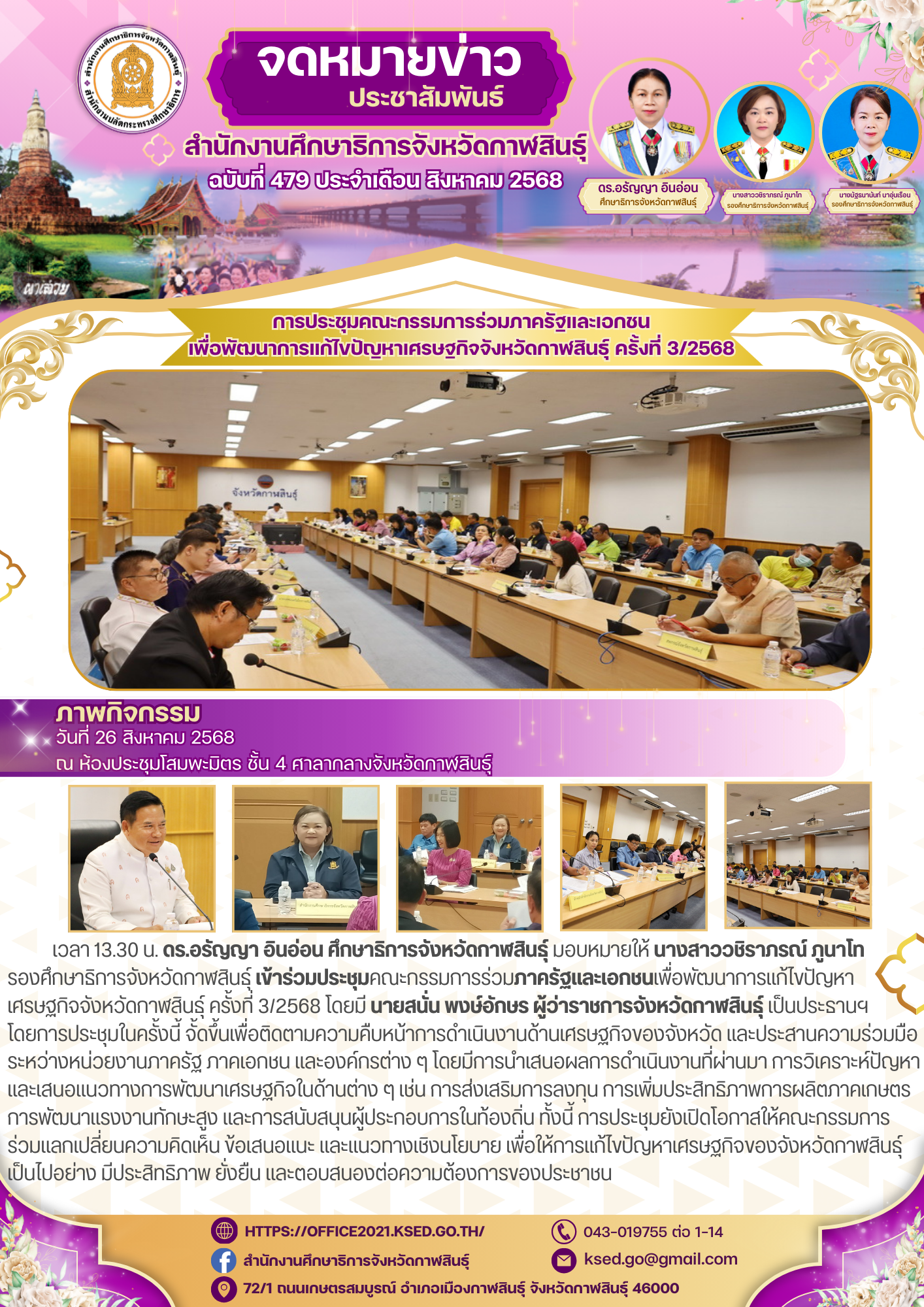 ประชุมคณะกรรมการร่วมภาครัฐและเอกชนเพื่อพัฒนาการแก้ไขปัญหาเศรษฐกิจจังหวัดกาฬสินธุ์ ครั้งที่ 3/2568โดย : นายสุวิทย์ ปะกาเวสา26 สิงหาคม 2568