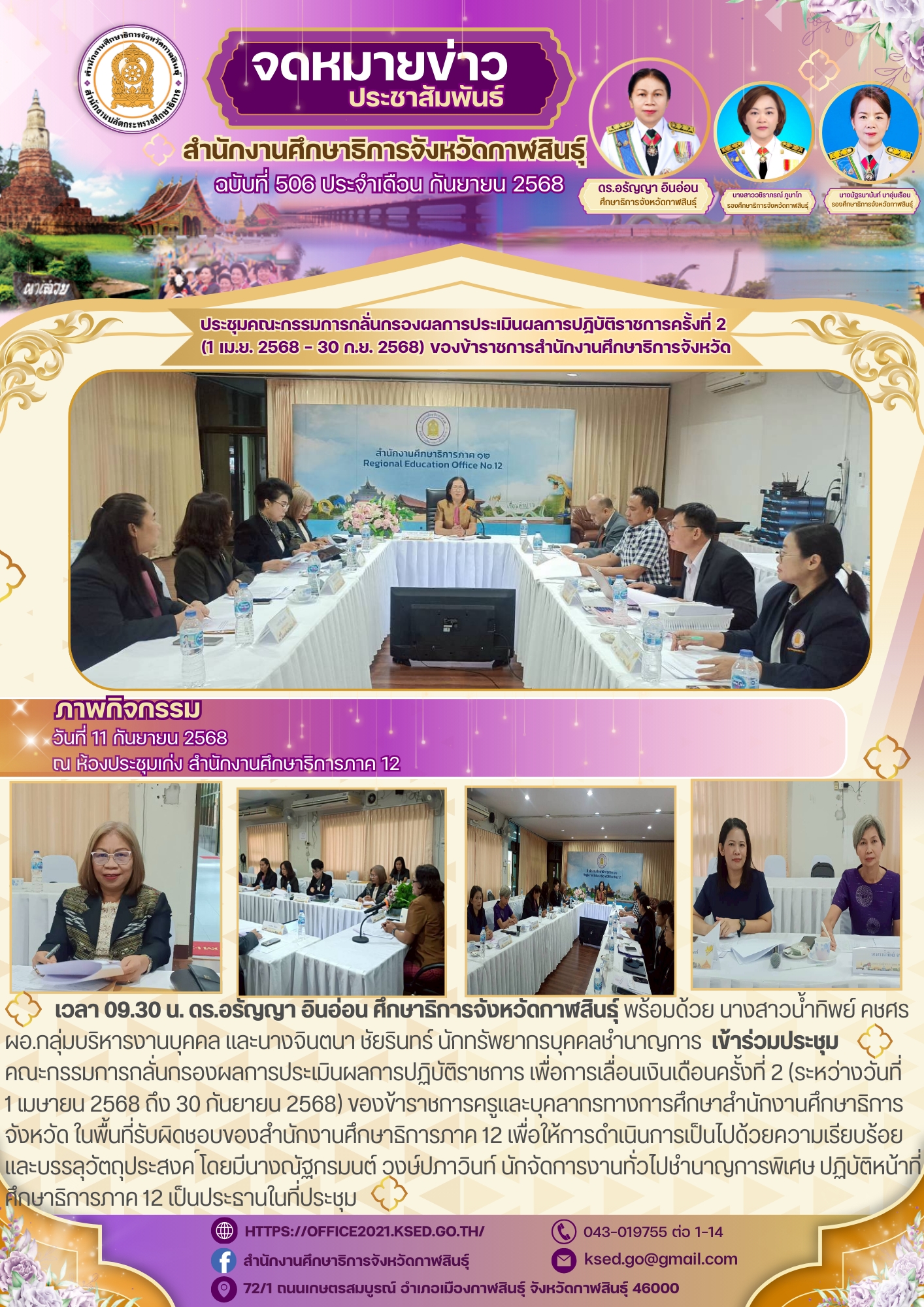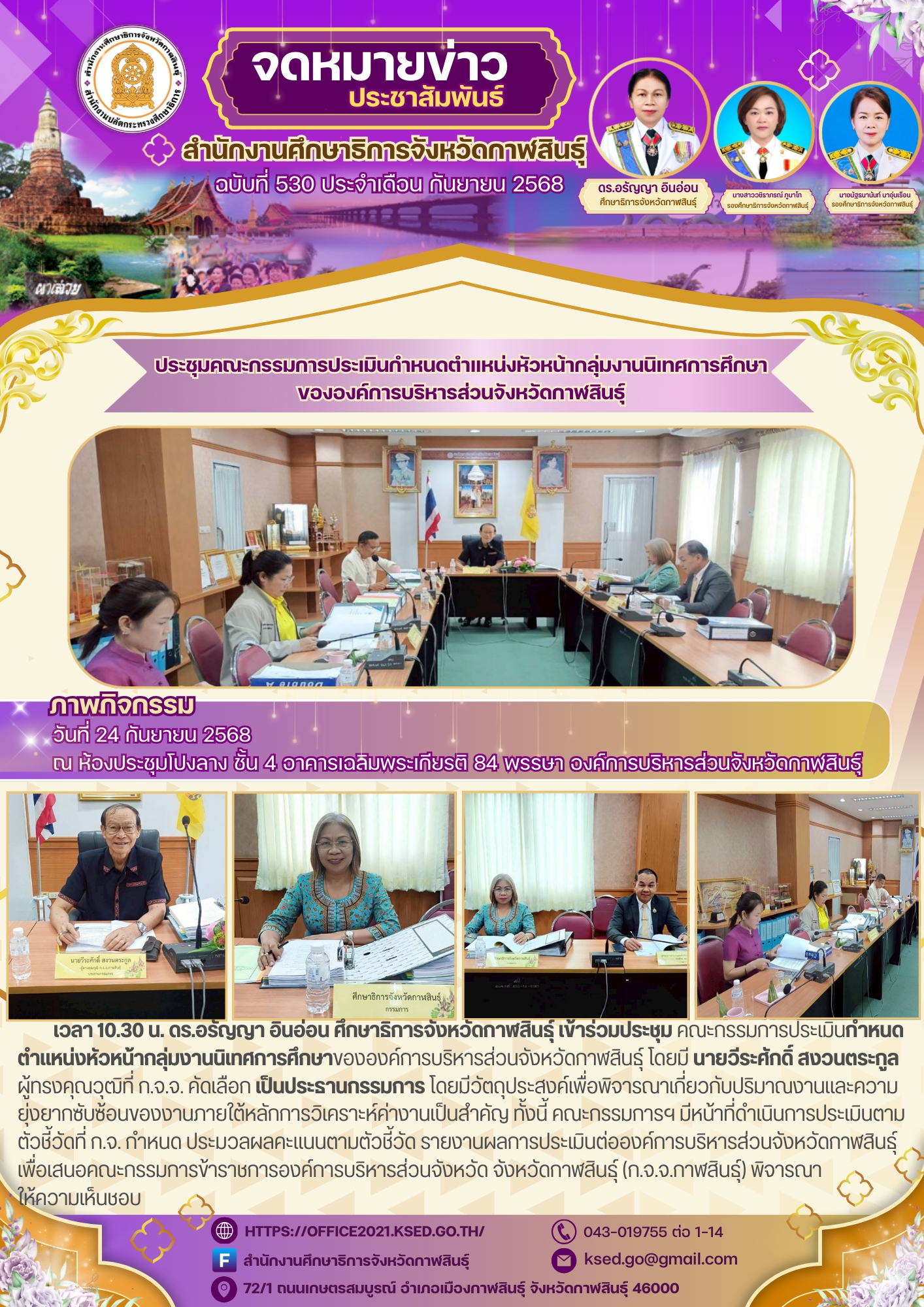 ประชุม คณะกรรมการประเมินกำหนดตำแหน่งหัวหน้ากลุ่มงานนิเทศการศึกษาขององค์การบริหารส่วนจังหวัดกาฬสินธุ์โดย : นายสุวิทย์ ปะกาเวสา24 กันยายน 2568