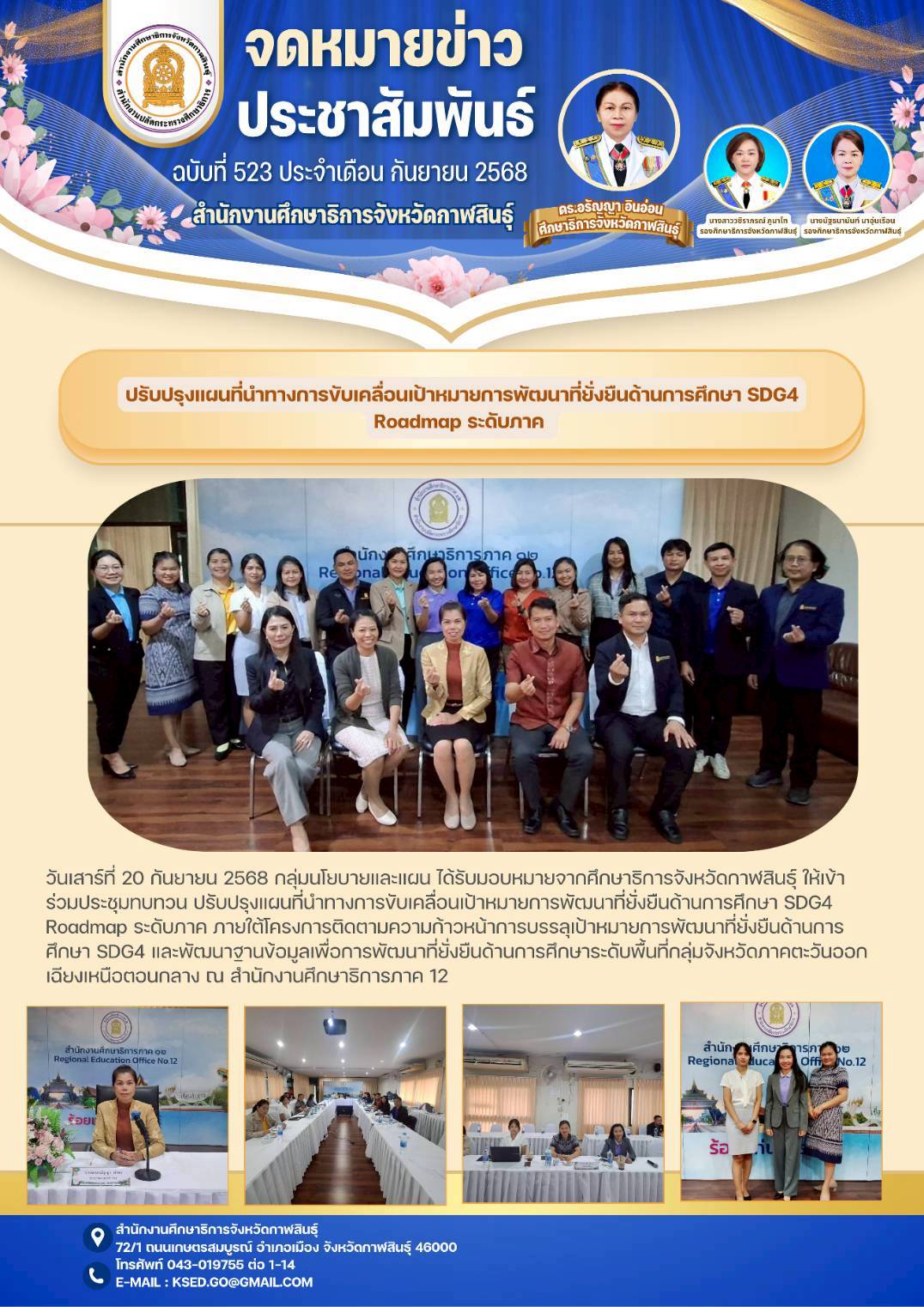 ปรับปรุงแผนที่นำทางการขับเคลื่อนเป้าหมายการพัฒนาที่ยั่งยืนด้านการศึกษา SDG4 Roadmap ระดับภาคโดย : นายสุวิทย์ ปะกาเวสา20 กันยายน 2568
