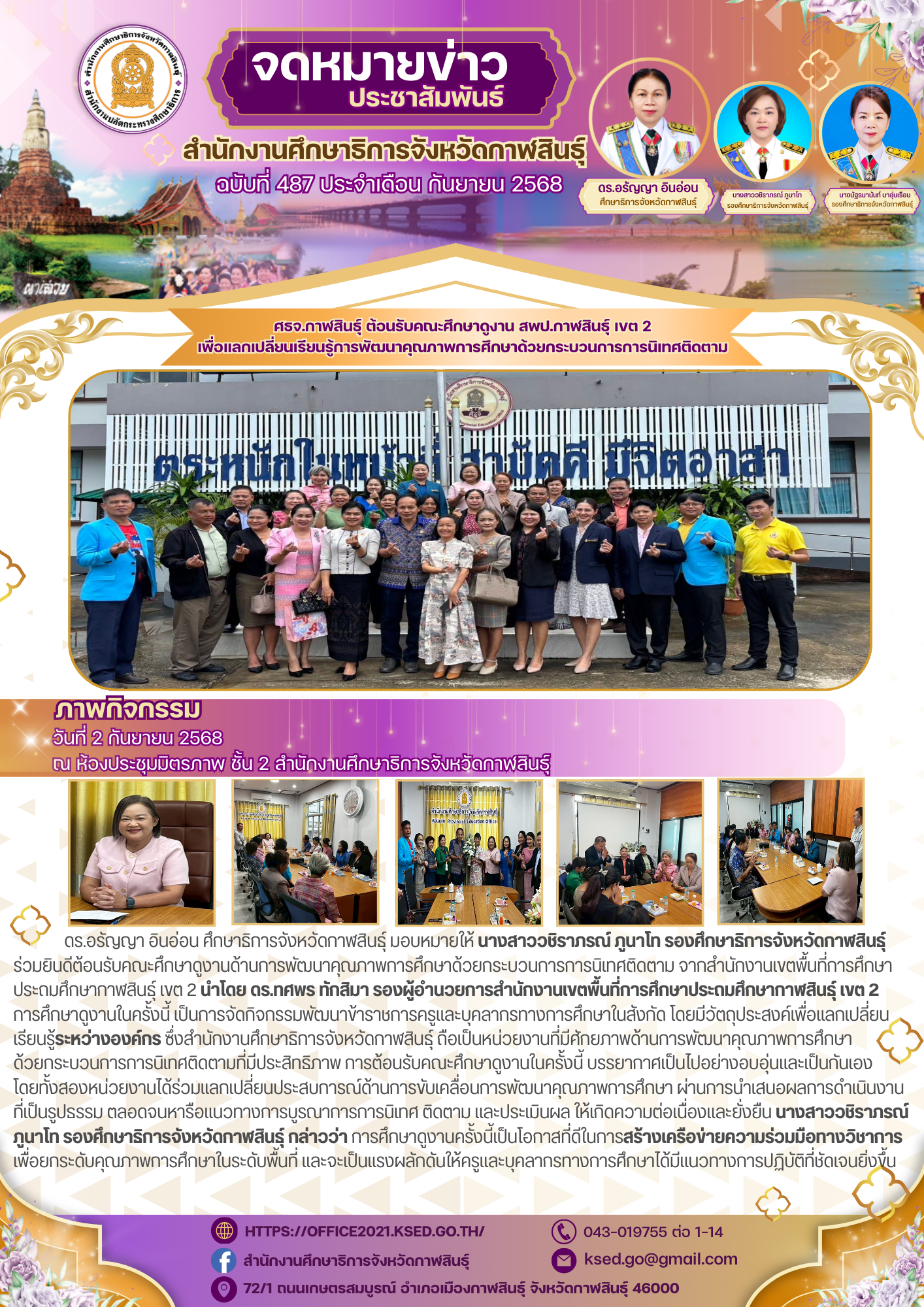 ร่วมยินดีต้อนรับคณะศึกษาดูงานด้านการพัฒนาคุณภาพการศึกษาด้วยกระบวนการการนิเทศติดตาม จากสำนักงานเขตพื้นที่การศึกษาประถมศึกษากาฬสินธุ์ เขต 2โดย : นายสุวิทย์ ปะกาเวสา2 กันยายน 2568
