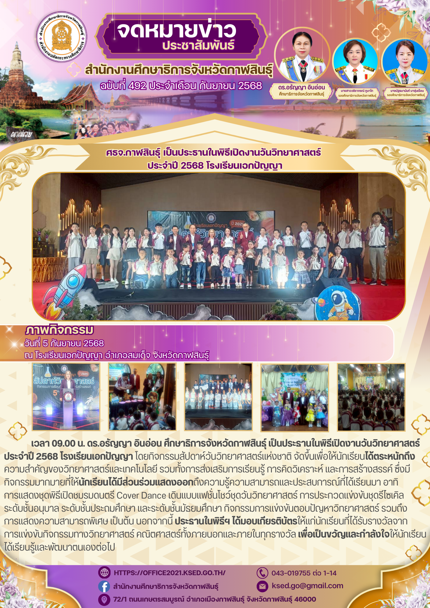 พิธีเปิดงานวันวิทยาศาสตร์ประจำปี 2568 โรงเรียนเอกปัญญา โดยกิจกรรมสัปดาห์วันวิทยาศาสตร์แห่งชาติโดย : นายสุวิทย์ ปะกาเวสา5 กันยายน 2568