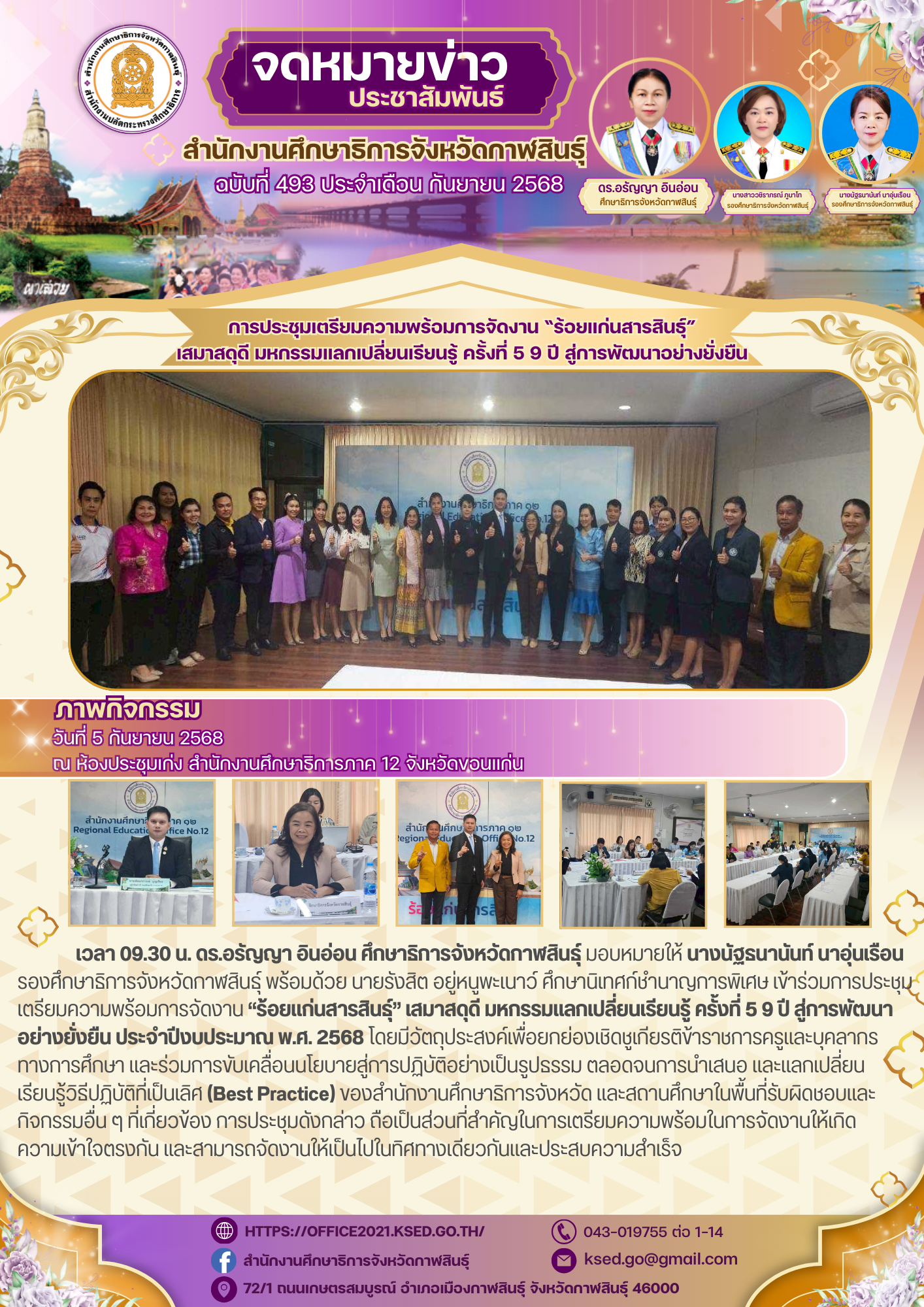 การประชุมเตรียมความพร้อมการจัดงาน “ร้อยแก่นสารสินธุ์” เสมาสดุดี มหกรรมแลกเปลี่ยนเรียนรู้ ครั้งที่ 59 ปี สู่การพัฒนาโดย : นายสุวิทย์ ปะกาเวสา5 กันยายน 2568