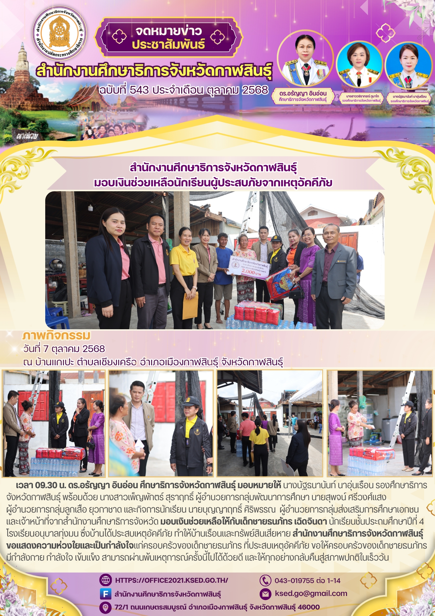 มอบเงินช่วยเหลือเด็กเนื่องจากบ้านได้ประสบเหตุอัคคีภัยโดย : นายสุวิทย์ ปะกาเวสา7 ตุลาคม 2568