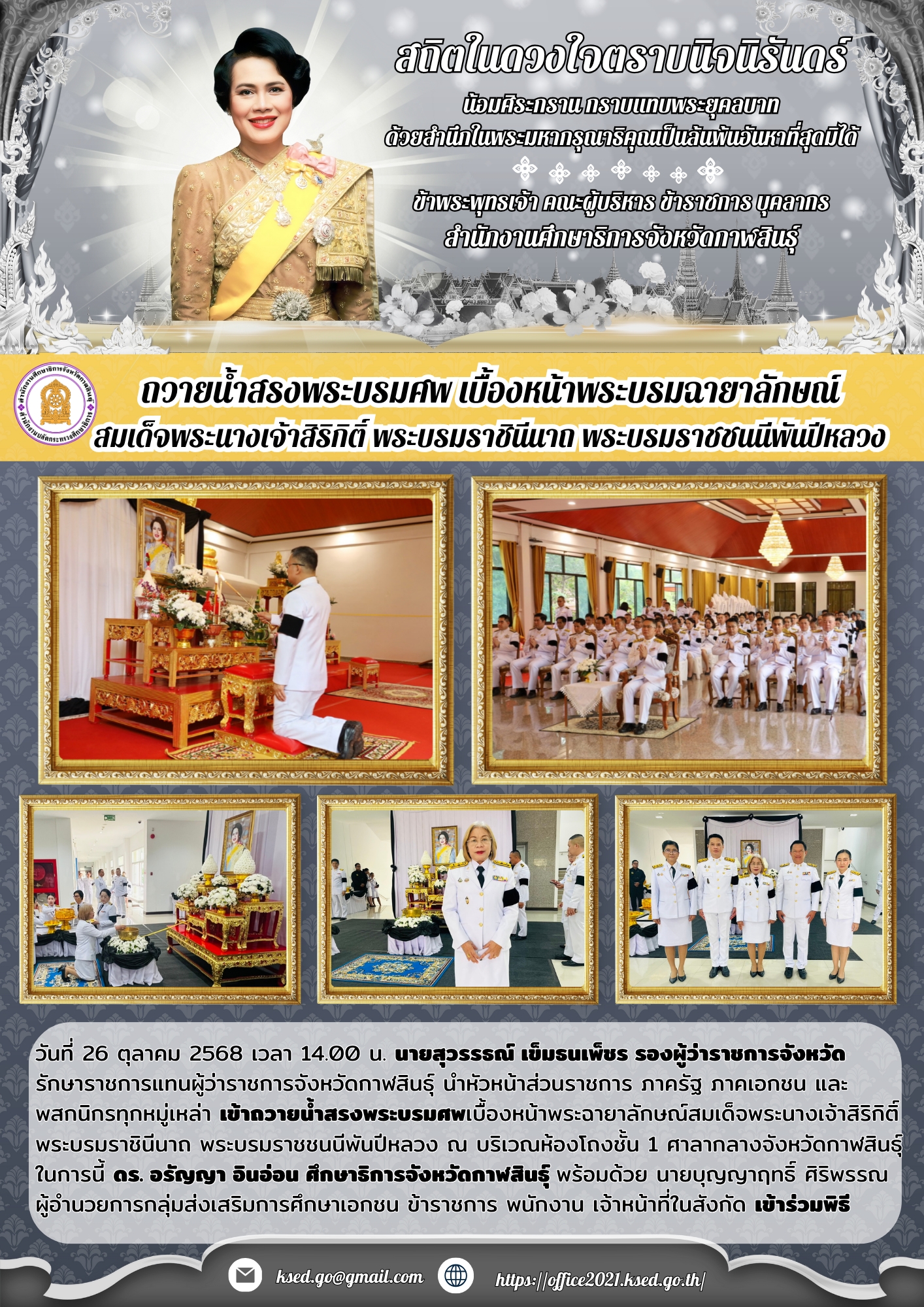 ถวายน้ำสรงพระบรมศพเบื้องหน้าพระฉายาลักษณ์สมเด็จพระนางเจ้าสิริกิติ์พระบรมราชินีนาถ พระบรมราชชนนีพันปีหลวงโดย : นายสุวิทย์ ปะกาเวสา26 ตุลาคม 2568