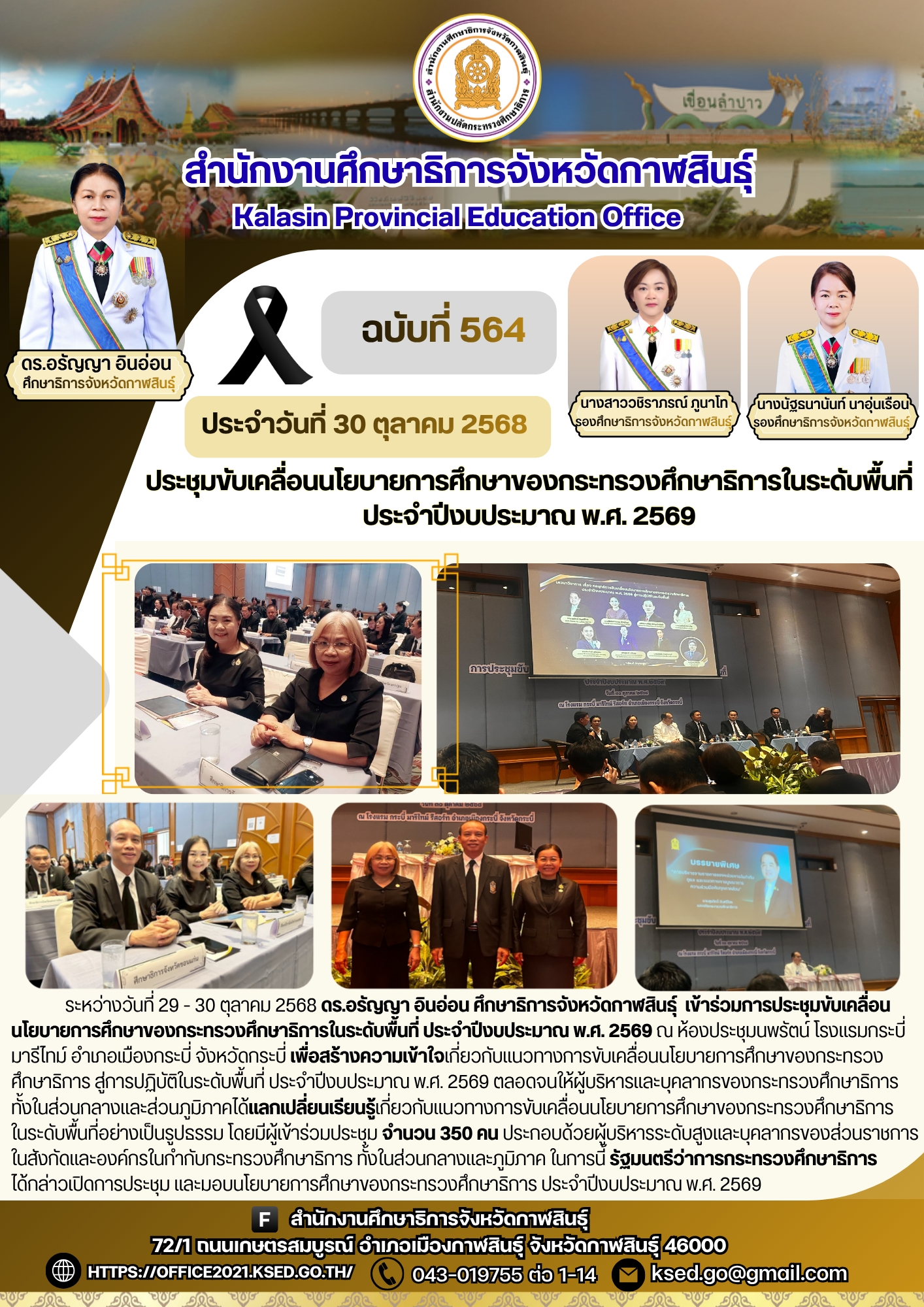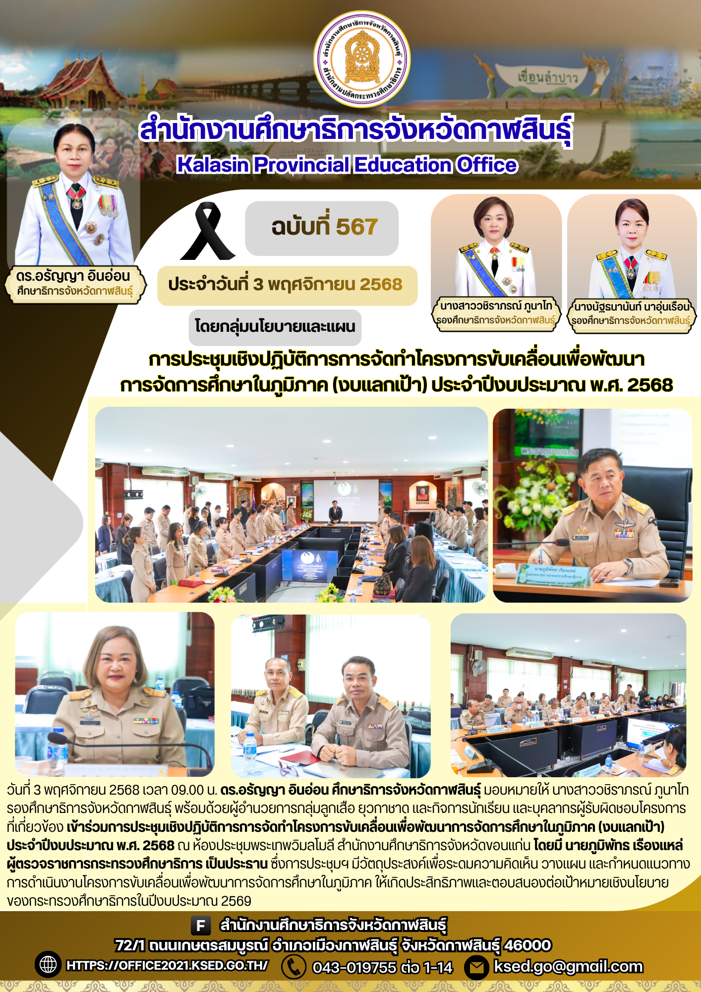 ศึกษาธิการจังหวัดกาฬสินธุ์ เข้าร่วมประชุมเชิงปฏิบัติการจัดทำโครงการขับเคลื่อนเพื่อพัฒนาการจัดการศึกษาในภูมิภาค (งบแลกเป้า)โดย : นายสุวิทย์ ปะกาเวสา27 ตุลาคม 2568