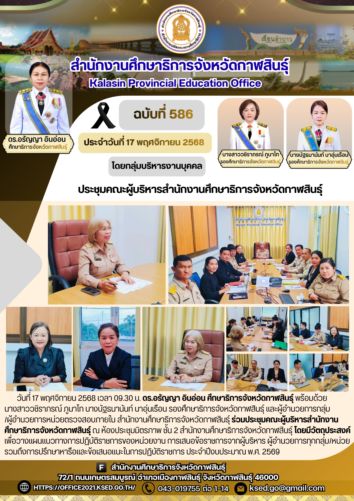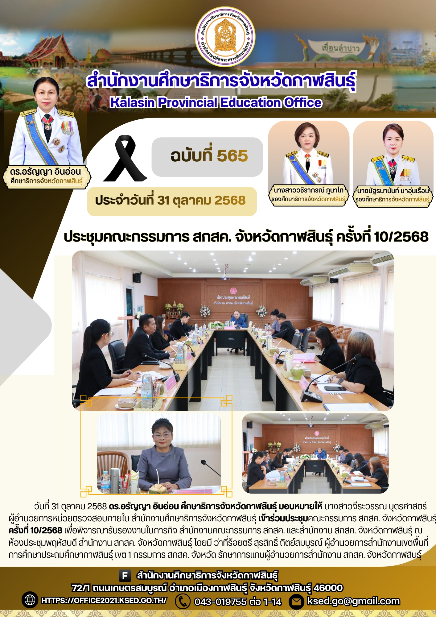 ประชุมคณะกรรมการ สกสค. จังหวัดกาฬสินธุ์ ครั้งที่ 10/2568โดย : นายสุวิทย์ ปะกาเวสา31 ตุลาคม 2568