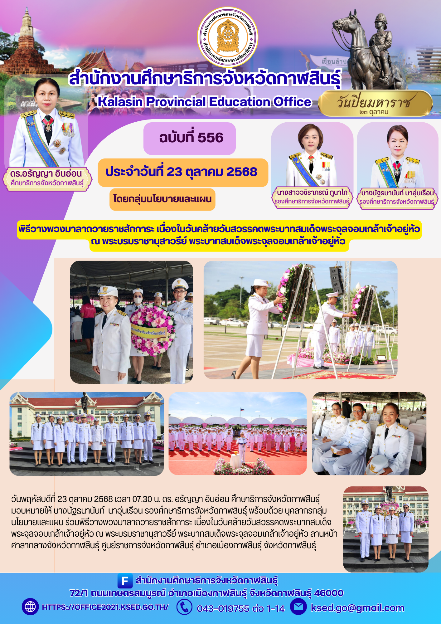 ร่วมพิธีวางพวงมาลาถวายราชสักการะ เนื่องในวันคล้ายวันสวรรคตพระบาทสมเด็จพระจุลจอมเกล้าเจ้าอยู่หัวโดย : นายสุวิทย์ ปะกาเวสา23 ตุลาคม 2568