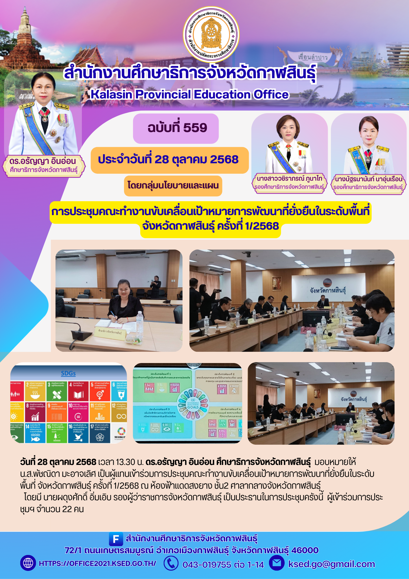 ประชุมคณะทำงานขับเคลื่อนเป้าหมายการพัฒนาที่ยั่งยืนในระดับพื้นที่ จังหวัดกาฬสินธุ์ ครั้งที่ 1/2568โดย : นายสุวิทย์ ปะกาเวสา28 ตุลาคม 2568