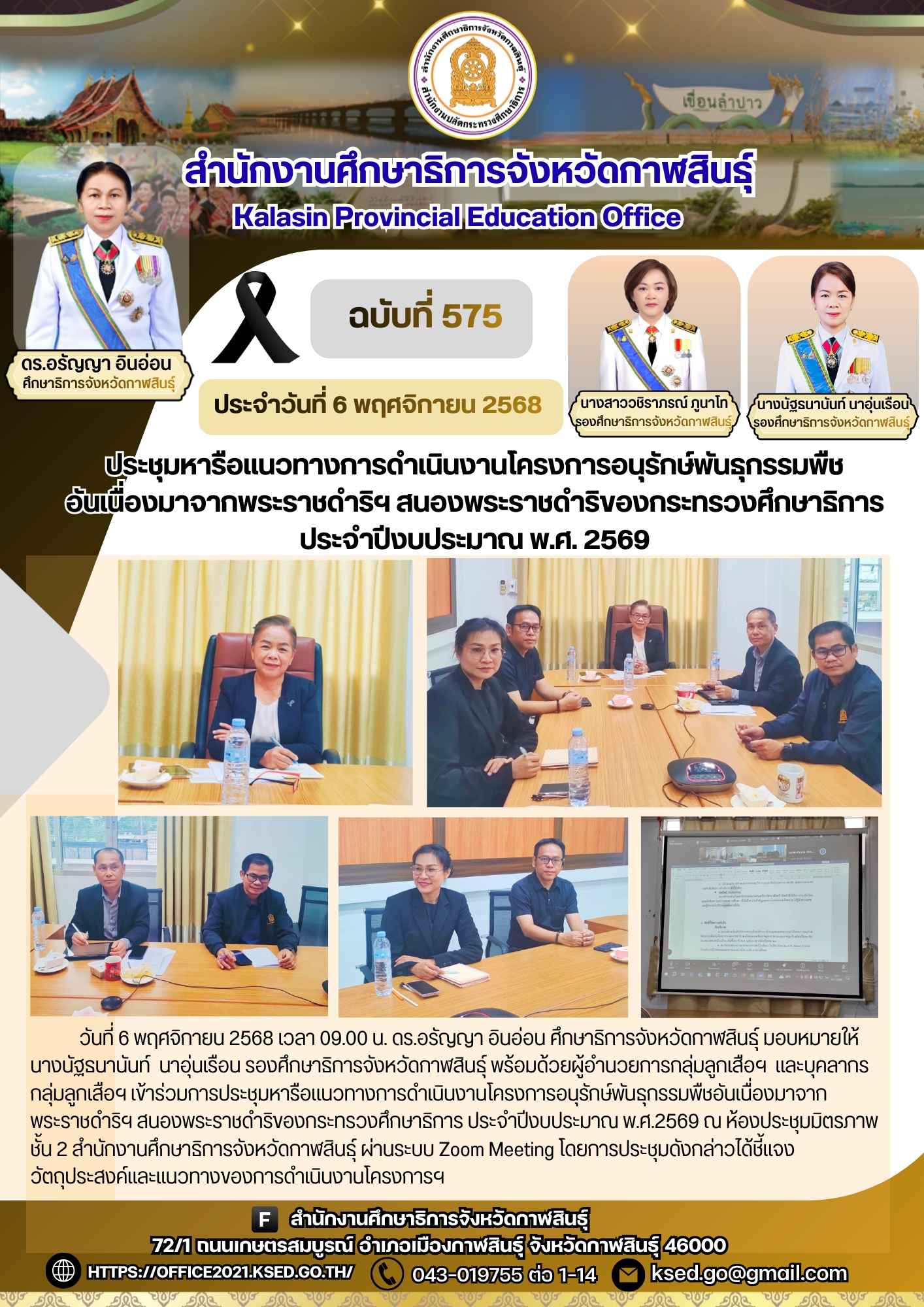 ประชุมหารือแนวทางการดำเนินงานโครงการอนุรักษ์พันธุกรรมพืชอันเนื่องมาจากพระราชดำริฯสนองพระราชดำริของกระทรวงศึกษาธิการ ประจำปีงบประมาณ พ.ศ.2569โดย : นายสุวิทย์ ปะกาเวสา6 พฤศจิกายน 2568