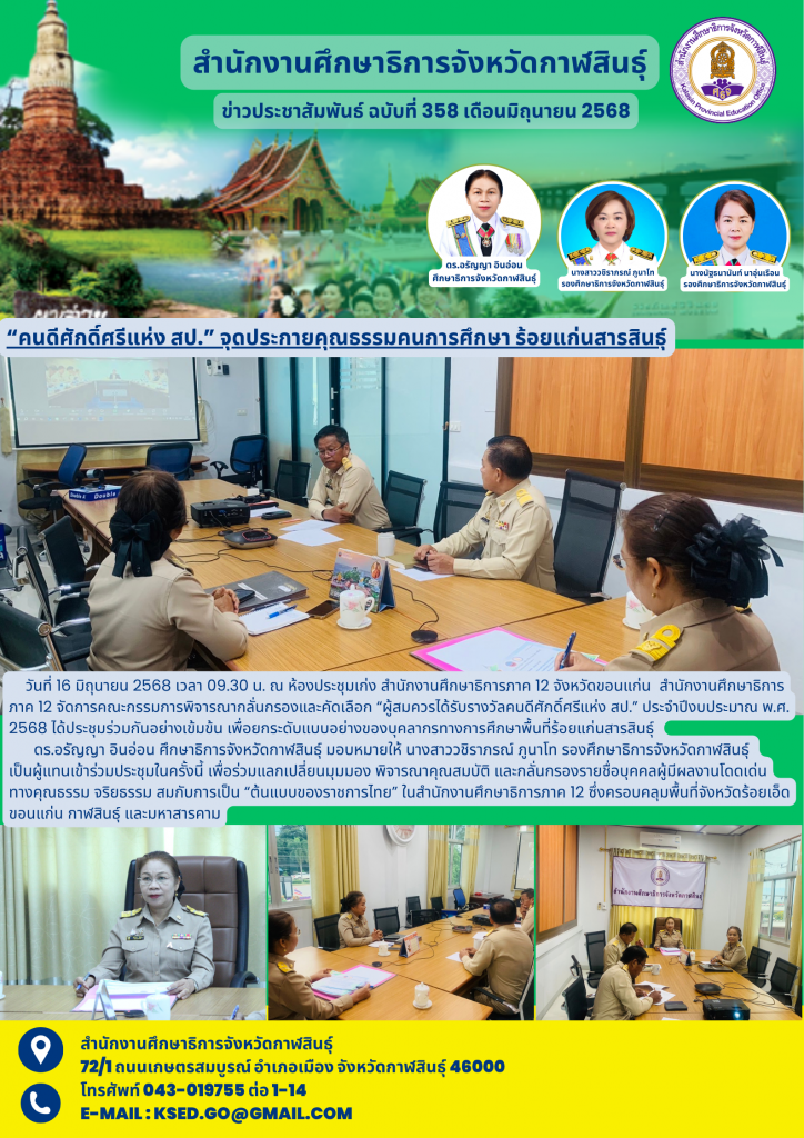 ณ ห้องประชุมมิตรภาพ ชั้น 2 สำนักงานศึกษาธิการจังหวัดกาฬสินธุ์
