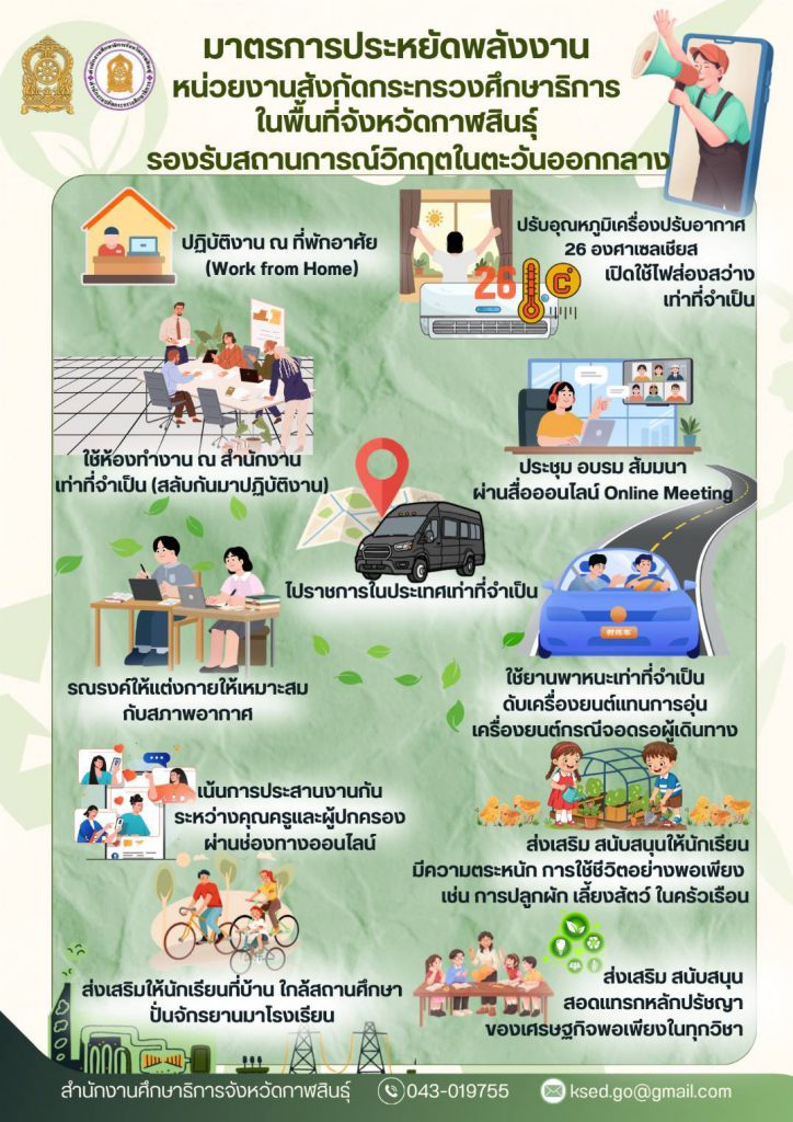 มาตรการประหยัดพลังงานหน่วยงานสังกัด กระทรวงศึกษาธิการในพื้นที่จังหวัดกาฬสินธุ์ 9 เมษายน 25699 เมษายน 2026 admin.sp กิจกรรม admin.sp
