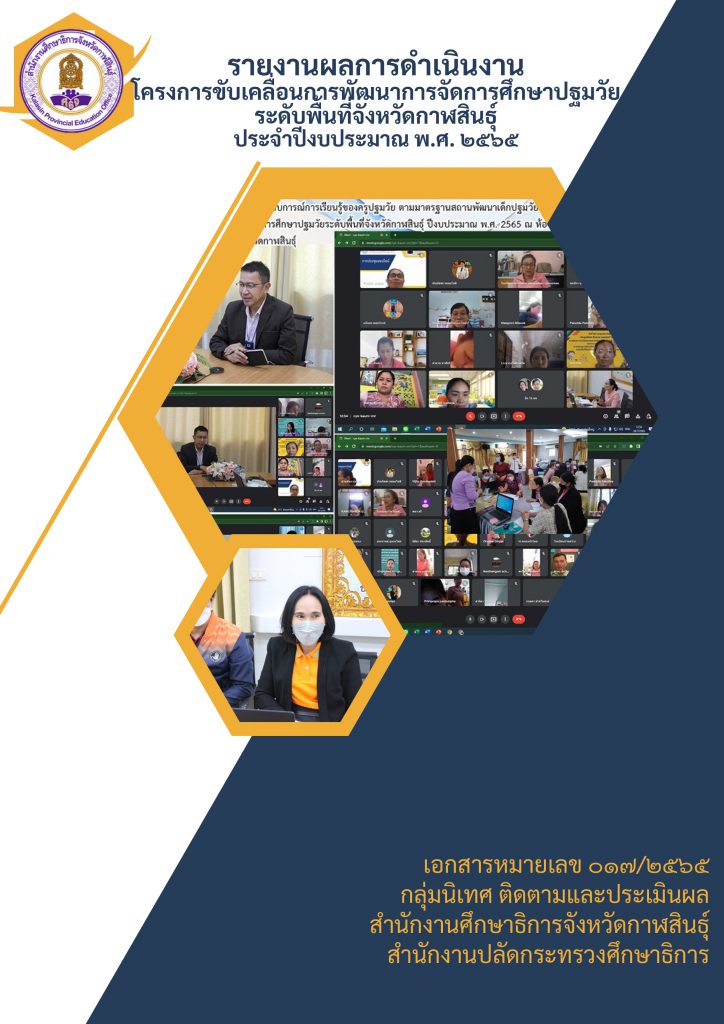 19 ตุลาคม 2565รายงานผลการดำเนินงานโครงการขับเคลื่อนการพัฒนาการจัดการศึกษาปฐมวัย ระดับพื้นที่จังหวัดกาฬสินธุ์ ประจำปีงบประมาณ พ.ศ. 2565