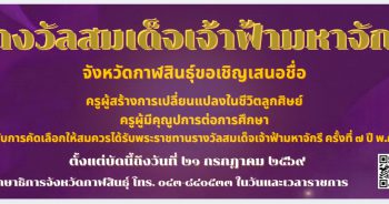จังหวัดกาฬสินธุ์ ขอเชิญเสนอชื่อครูผู้สมควรได้รับพระราชทานรางวัลสมเด็จเจ้าฟ้ามหาจักรี ครั้งที่ 7 ปี 2570