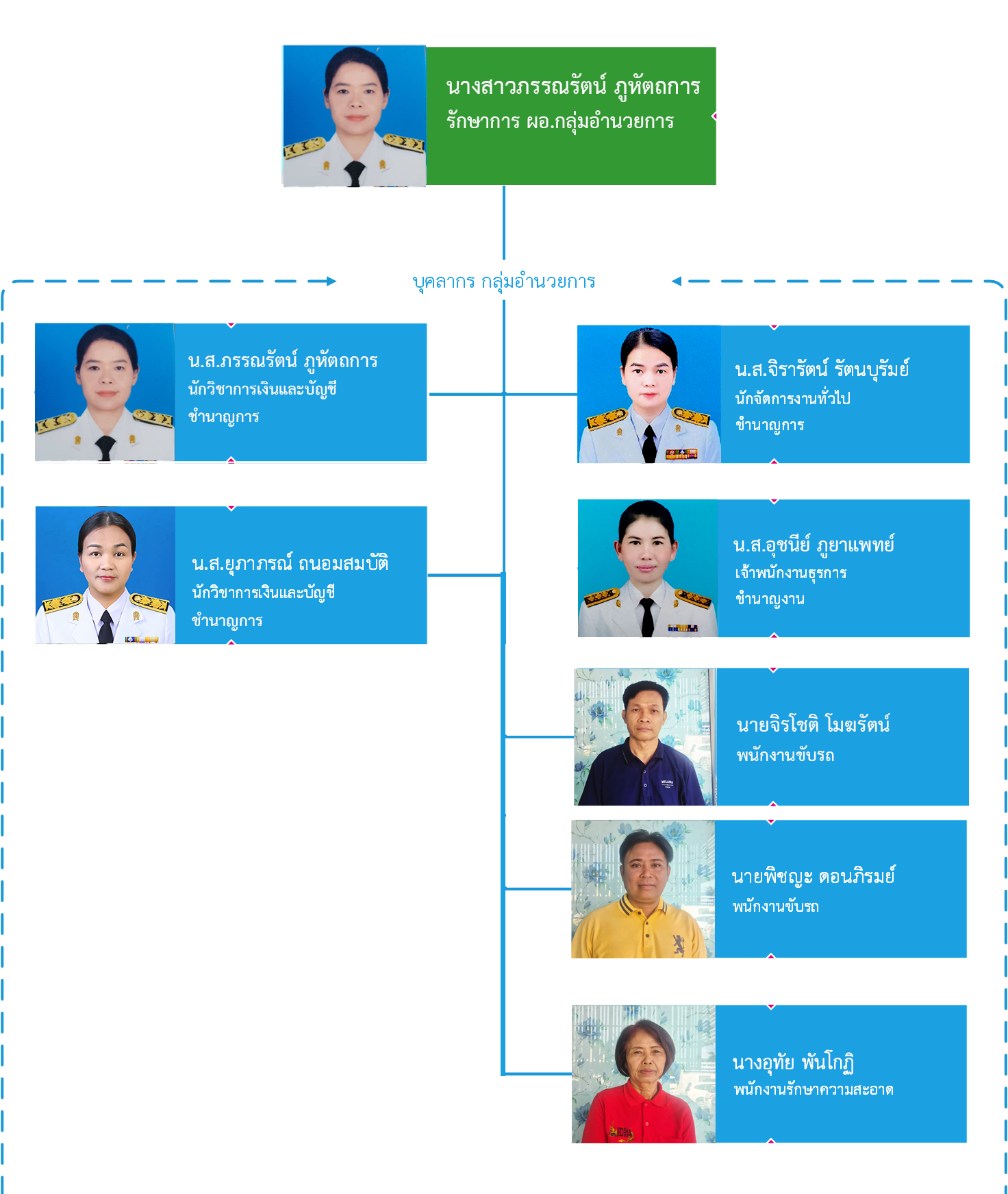 - ดำเนินงานเกี่ยวกับการบริหารการเงิน บัญชี และพัสดุ